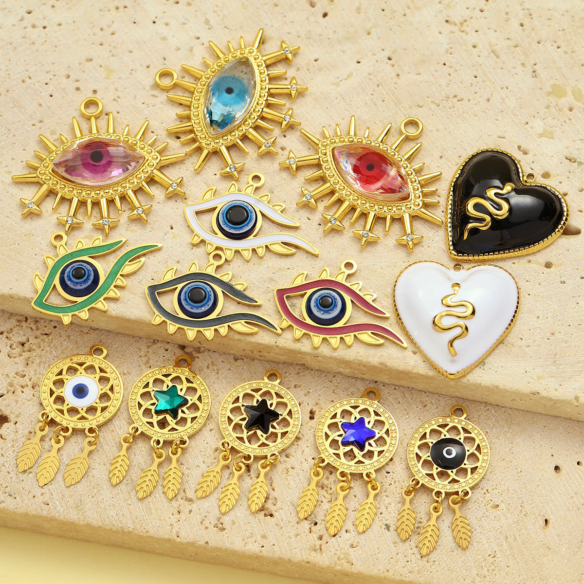 Rustfrit stål smykker Vedhæng, 304 rustfrit stål, med Glassten, Anden figur til valg & du kan DIY & emalje & med rhinestone, flere farver til valg, 3pc'er/Bag, Solgt af Bag