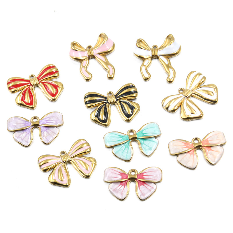 Rustfrit stål smykker Vedhæng, 304 rustfrit stål, Bowknot, du kan DIY & forskellig størrelse for valg & emalje, flere farver til valg, 10pc'er/Bag, Solgt af Bag