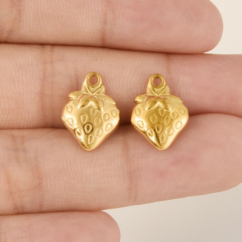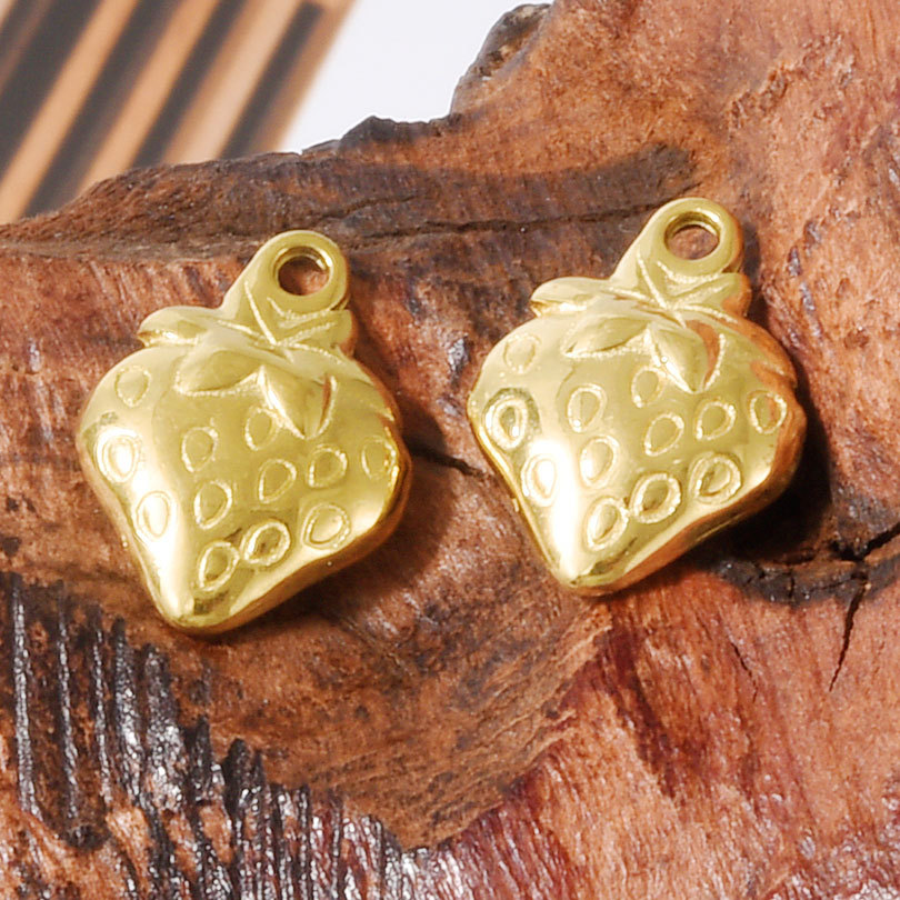 Rustfrit stål smykker Vedhæng, 304 rustfrit stål, Strawberry, forgyldt, du kan DIY, flere farver til valg, 15x11mm, 10pc'er/Bag, Solgt af Bag