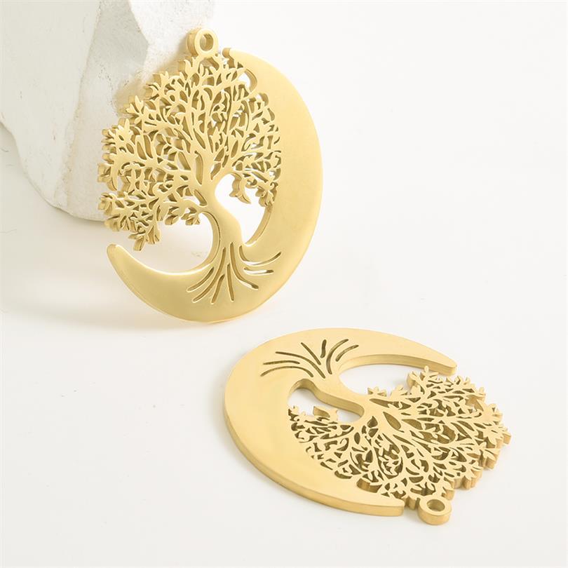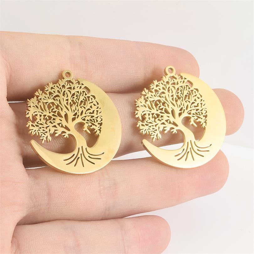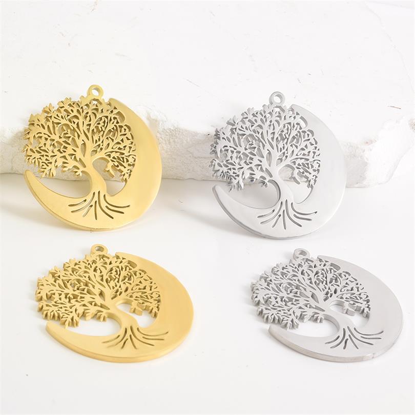 Rustfrit stål smykker Vedhæng, 304 rustfrit stål, Tree, forgyldt, du kan DIY & hule, flere farver til valg, 10pc'er/Bag, Solgt af Bag