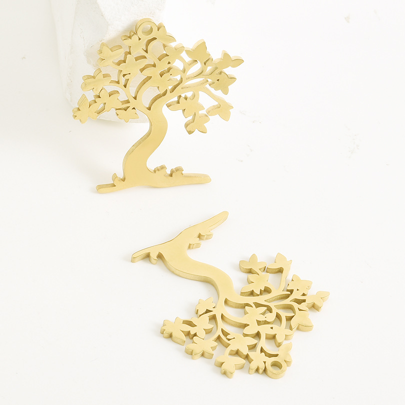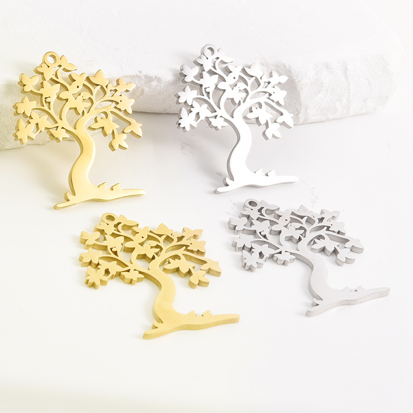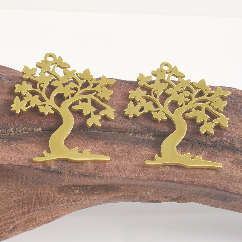 Rustfrit stål smykker Vedhæng, 304 rustfrit stål, Tree, forgyldt, du kan DIY & hule, flere farver til valg, 10pc'er/Bag, Solgt af Bag