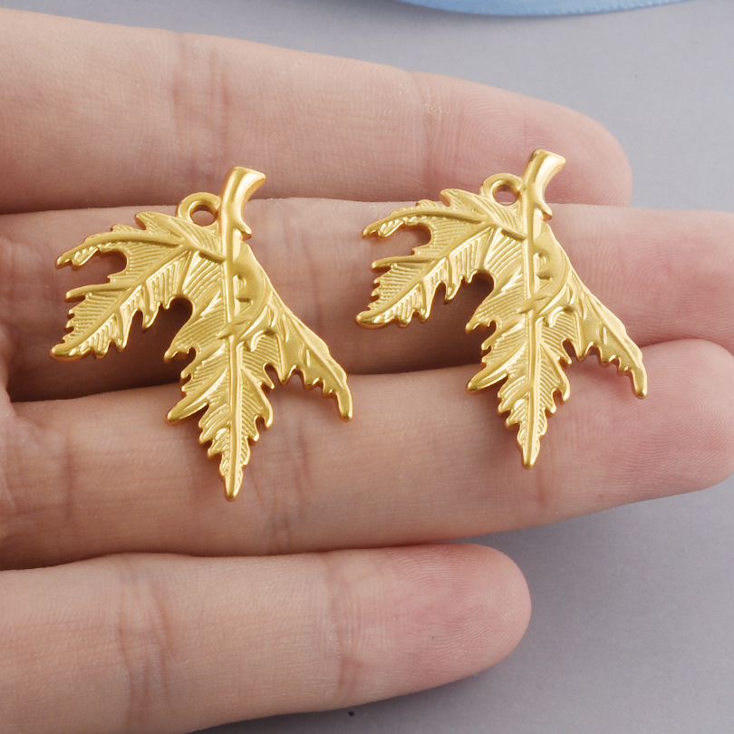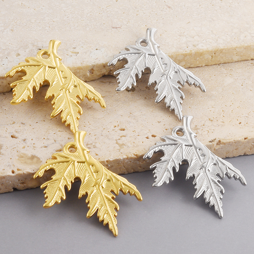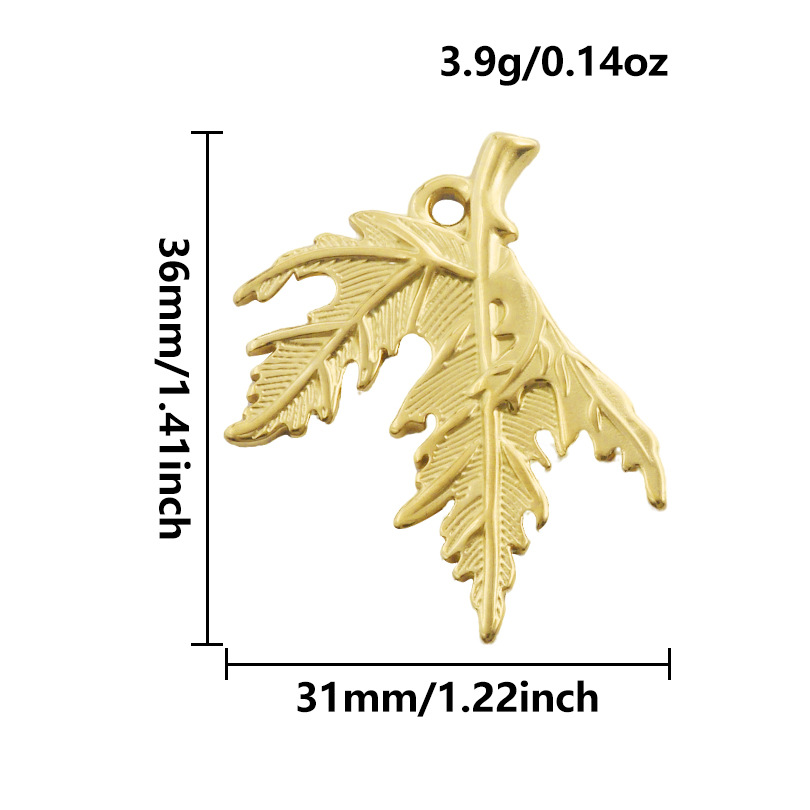 Rustfrit stål smykker Vedhæng, 304 rustfrit stål, Leaf, forgyldt, du kan DIY, flere farver til valg, 10pc'er/Bag, Solgt af Bag