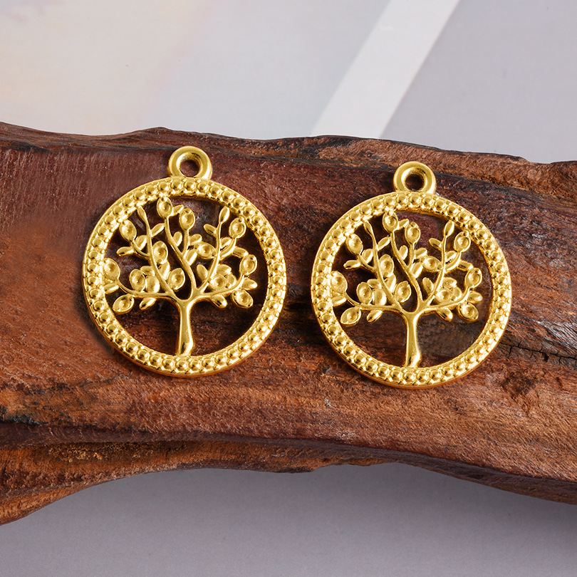 Rustfrit stål smykker Vedhæng, 304 rustfrit stål, Tree, forgyldt, du kan DIY & hule, flere farver til valg, 10pc'er/Bag, Solgt af Bag