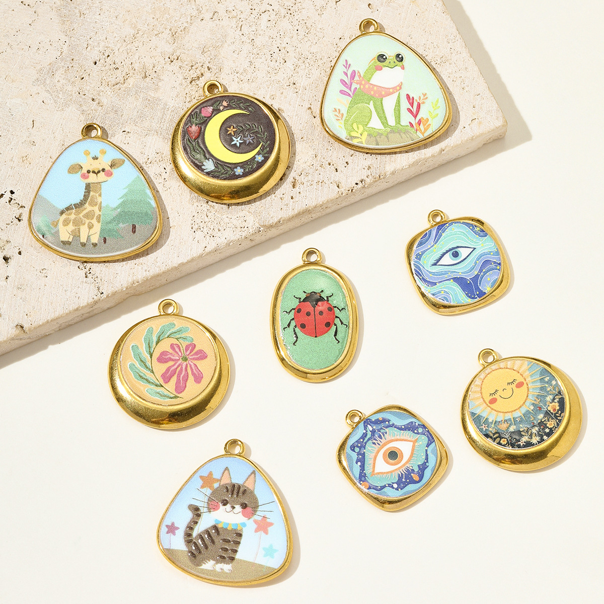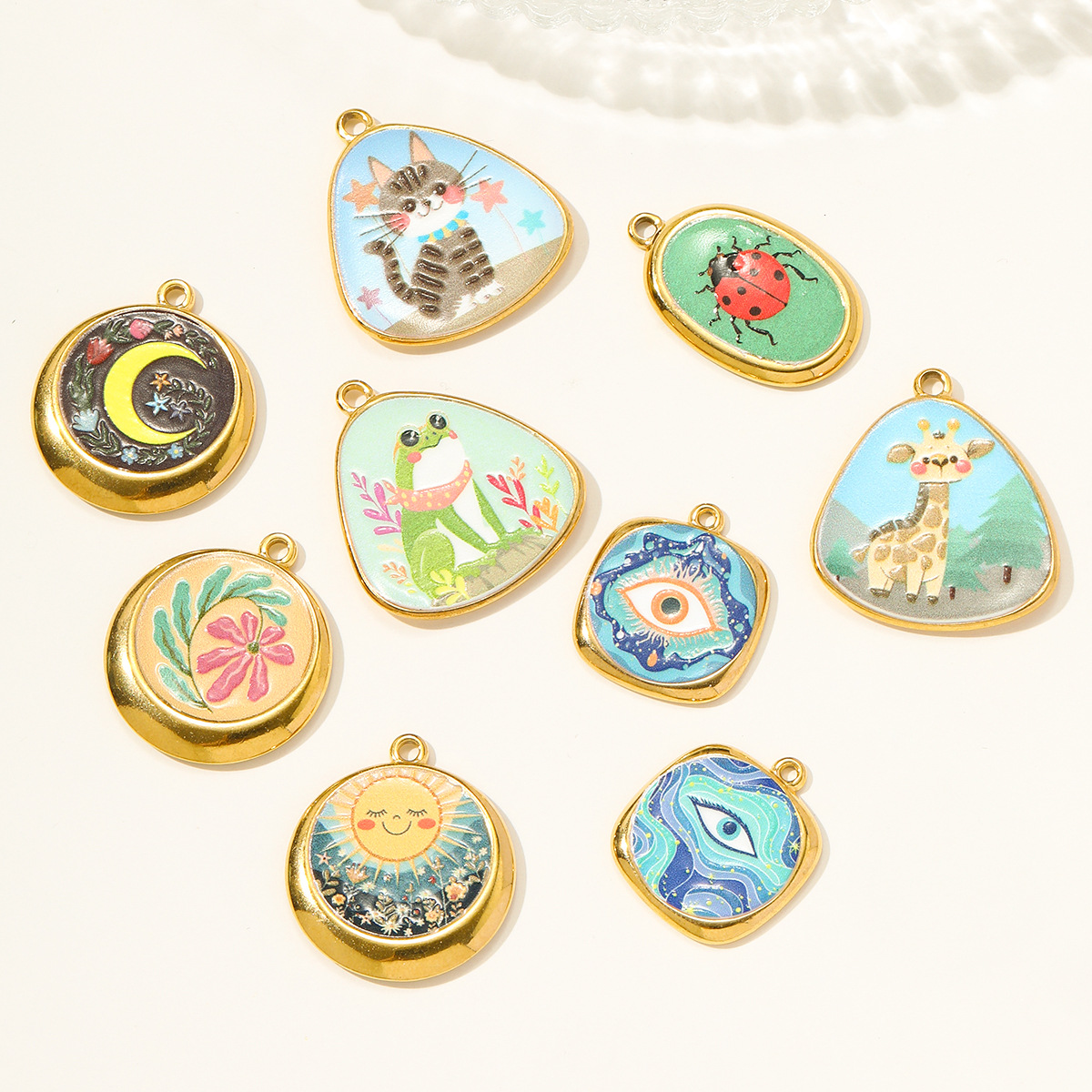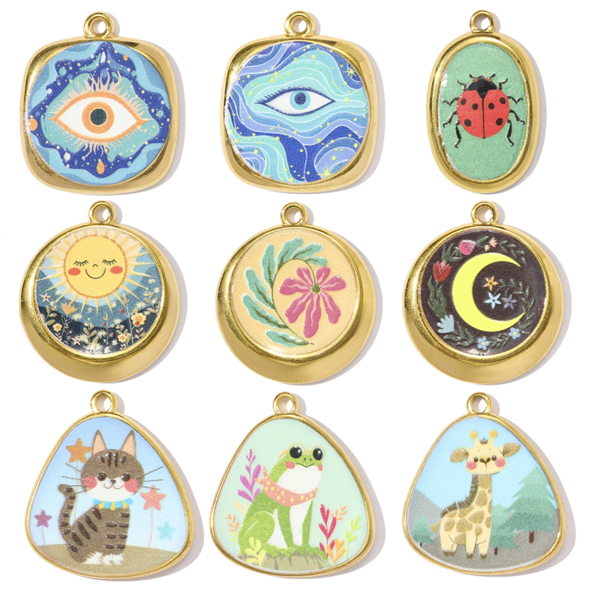 Rustfrit stål smykker Vedhæng, 304 rustfrit stål, guldfarve belagt, du kan DIY & emalje, flere farver til valg, 3pc'er/Bag, Solgt af Bag