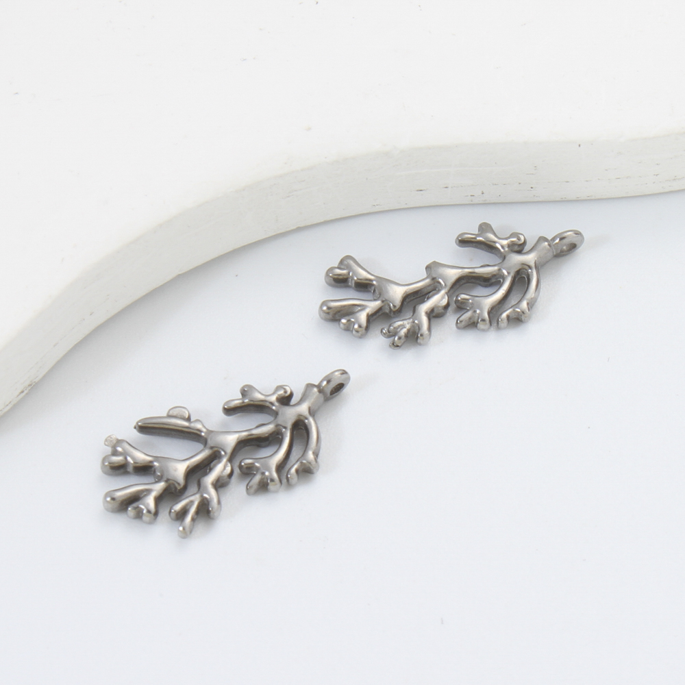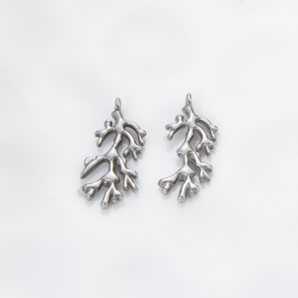 Rustfrit stål smykker Vedhæng, 304 rustfrit stål, Branch, sølvfarvet forgyldt, du kan DIY, sølv, 20x9.70x1.20mm, Solgt af PC