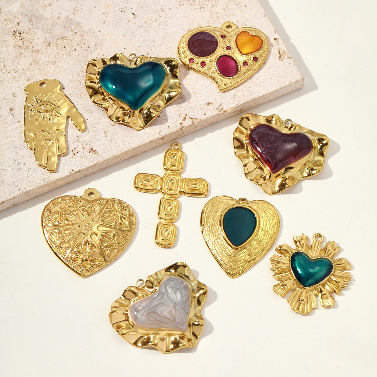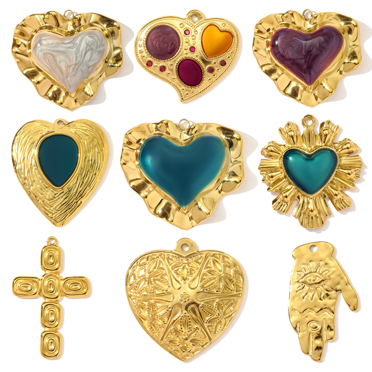 Rustfrit stål smykker Vedhæng, 304 rustfrit stål, Anden figur til valg & du kan DIY & emalje, flere farver til valg, 3pc'er/Bag, Solgt af Bag