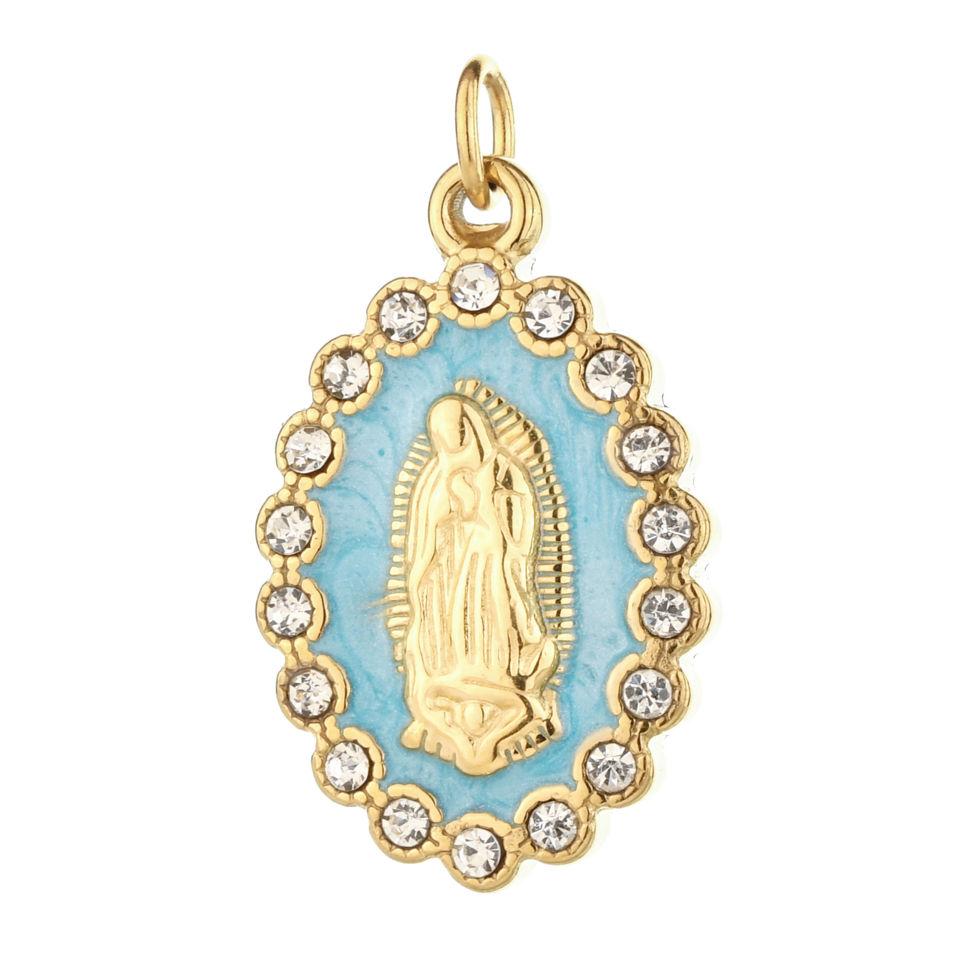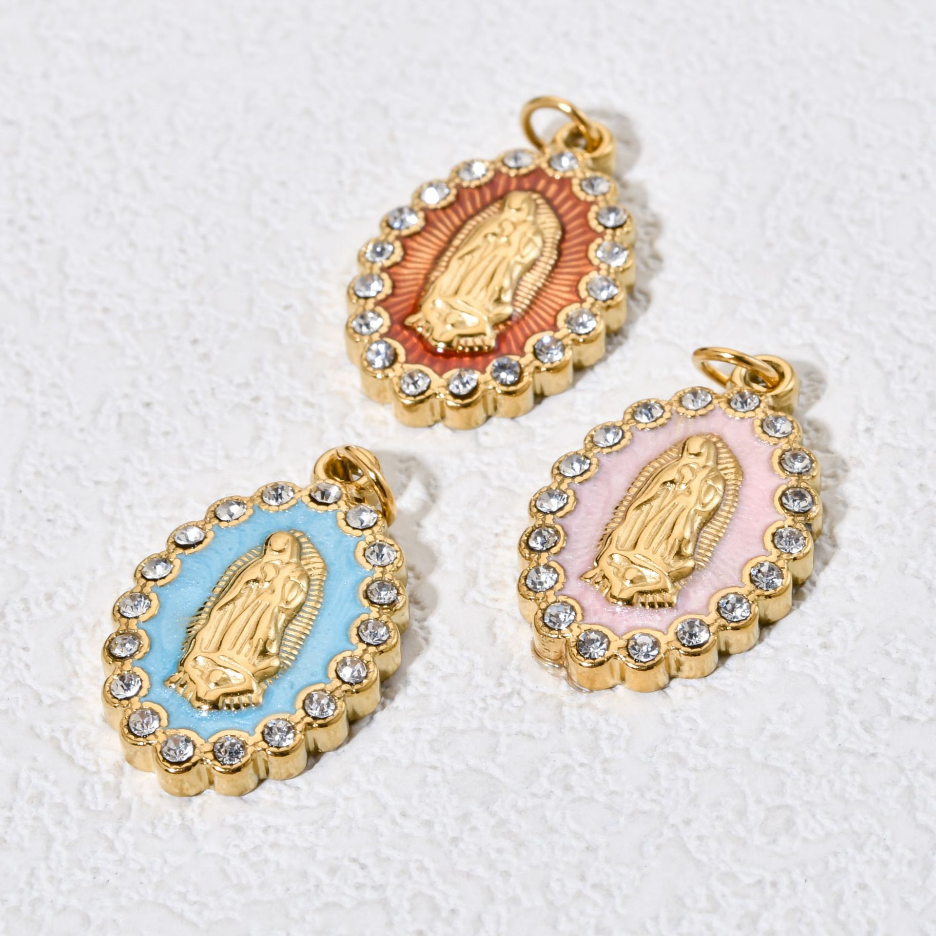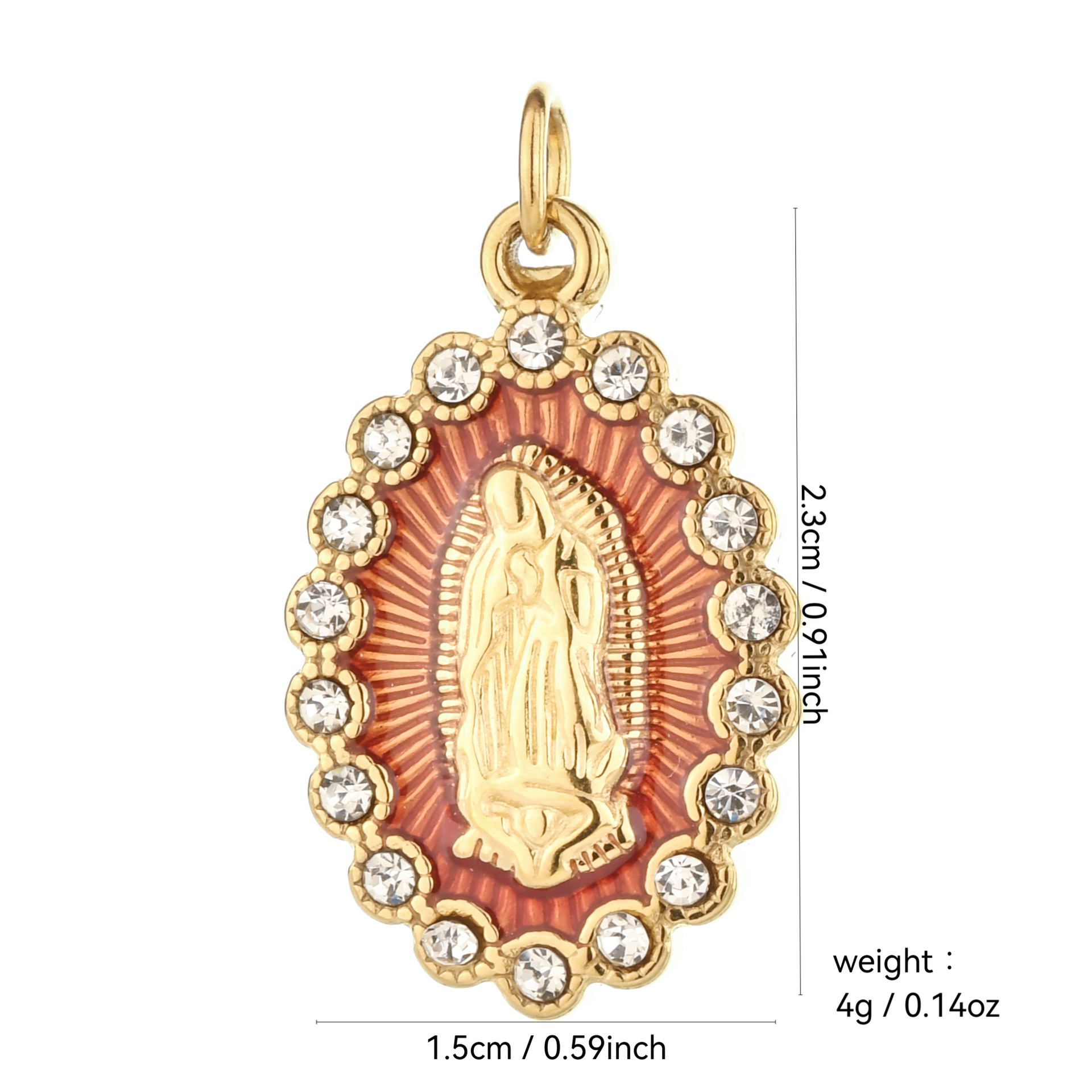 Rustfrit stål smykker Vedhæng, 304 rustfrit stål, Jomfru Maria, guldfarve belagt, du kan DIY & emalje & med rhinestone, flere farver til valg, 15x23mm, Solgt af PC