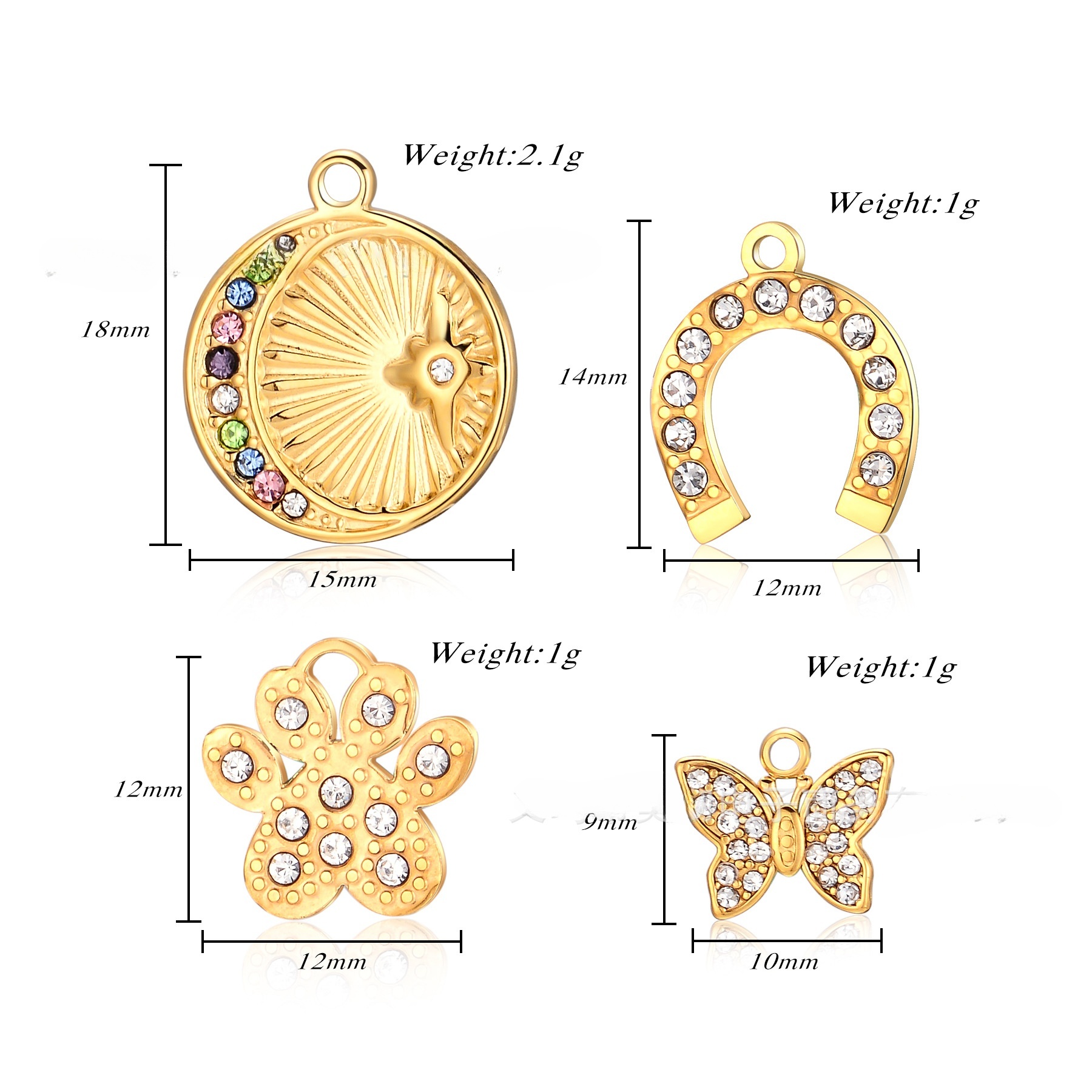 Rustfrit stål smykker Vedhæng, 304 rustfrit stål, Anden figur til valg & du kan DIY & med rhinestone, flere farver til valg, 3pc'er/Bag, Solgt af Bag
