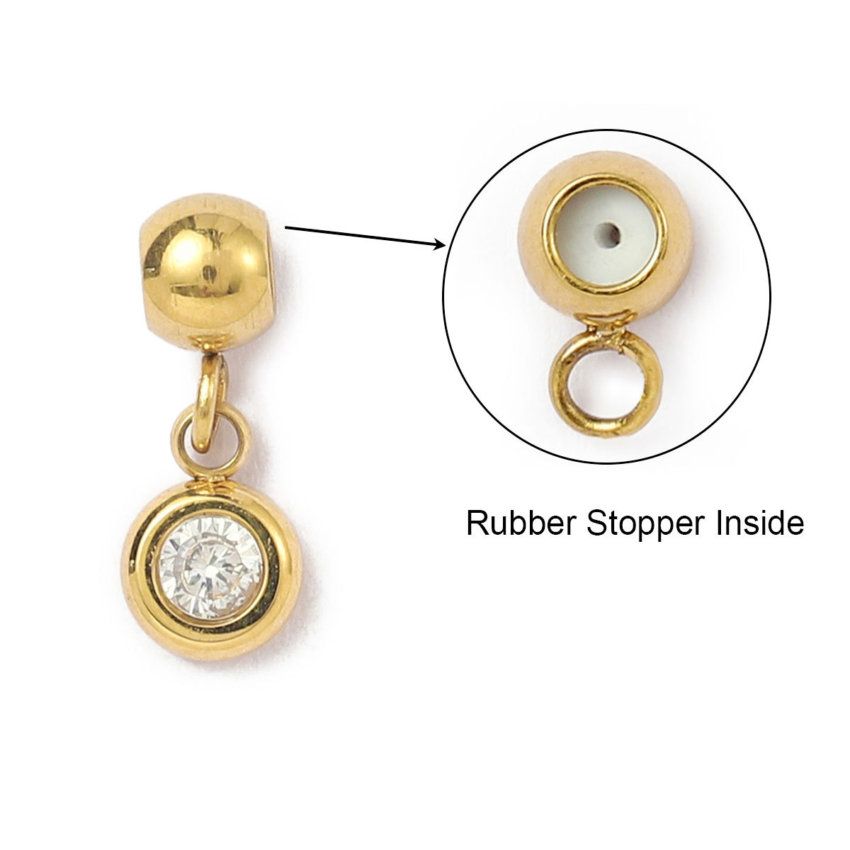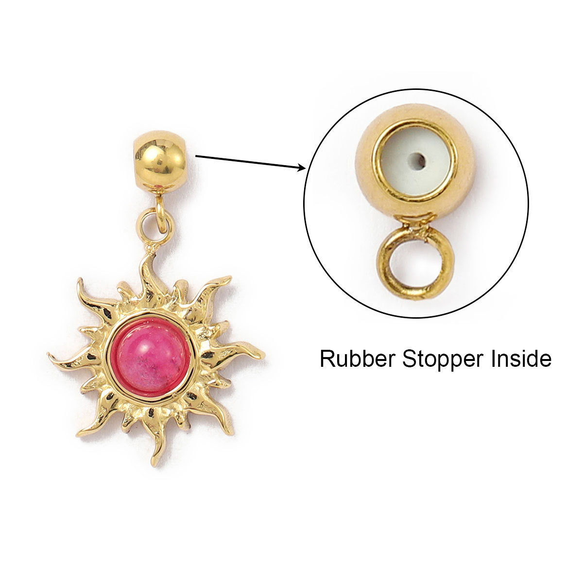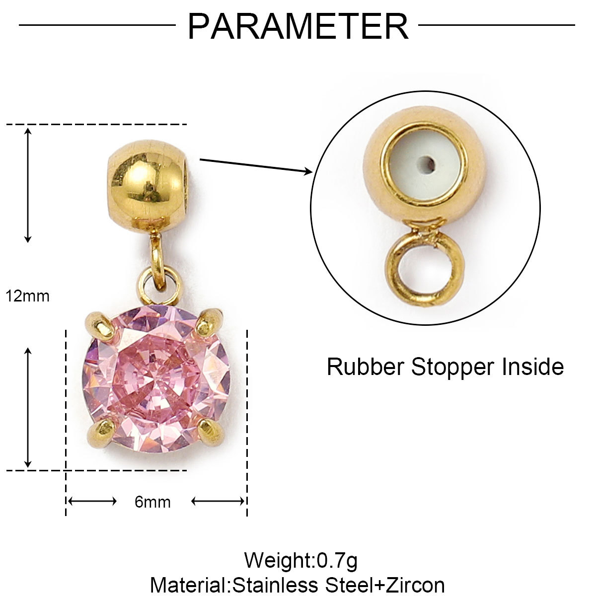 Rustfrit stål smykker Vedhæng, 304 rustfrit stål, med Natursten & Gummi, guldfarve belagt, du kan DIY & Micro Pave cubic zirconia, flere farver til valg, 3pc'er/Bag, Solgt af Bag