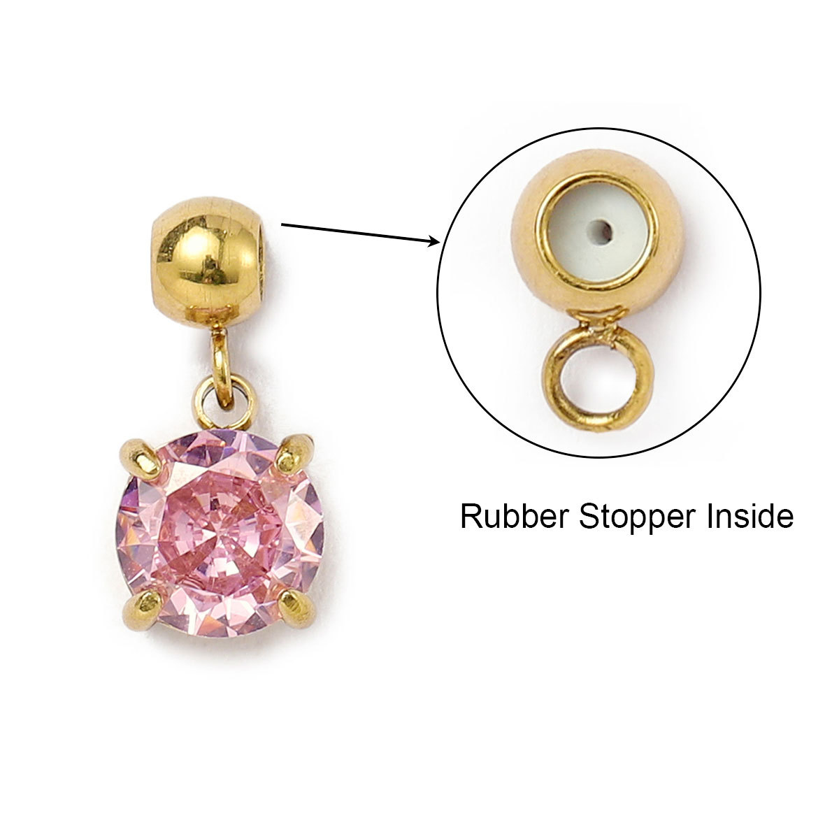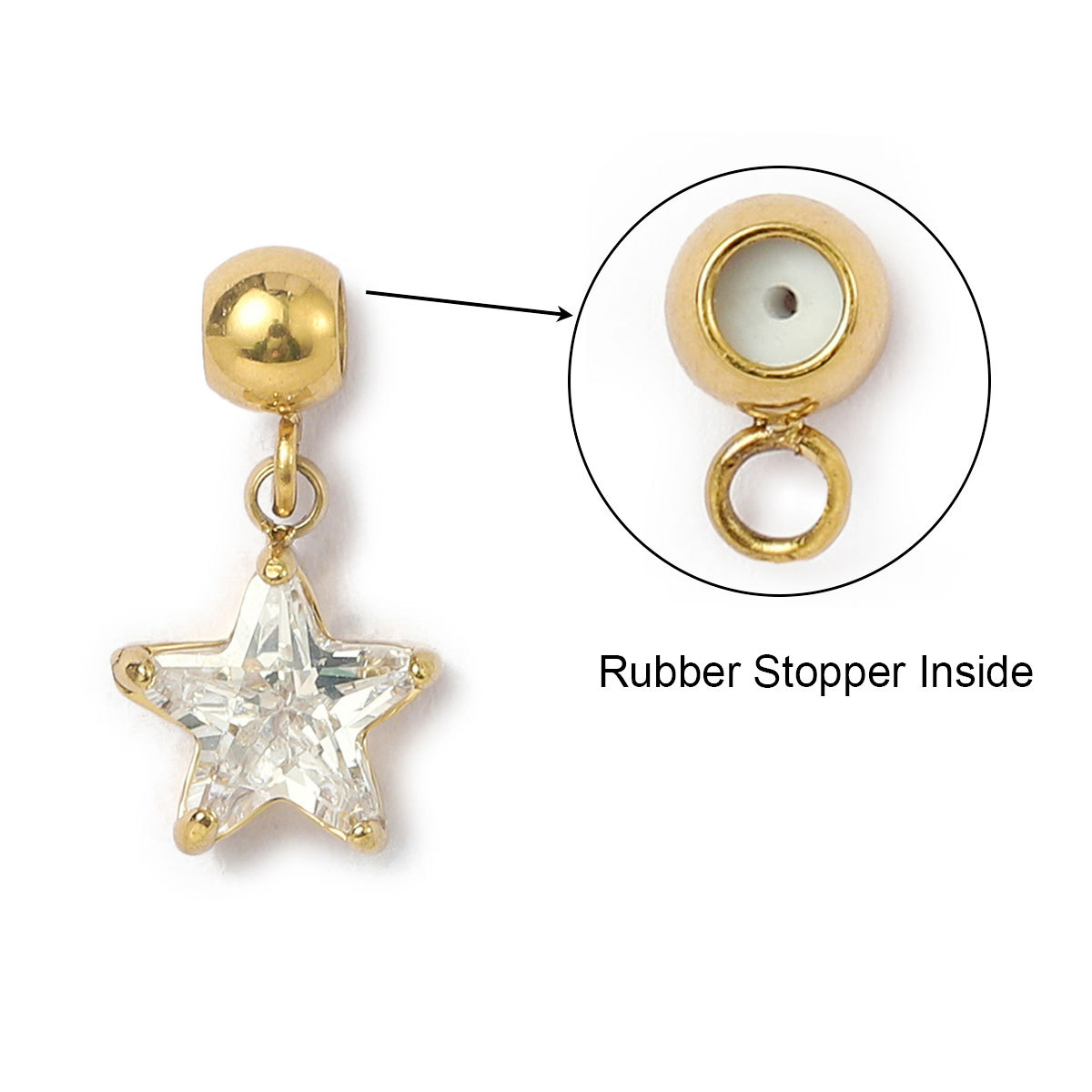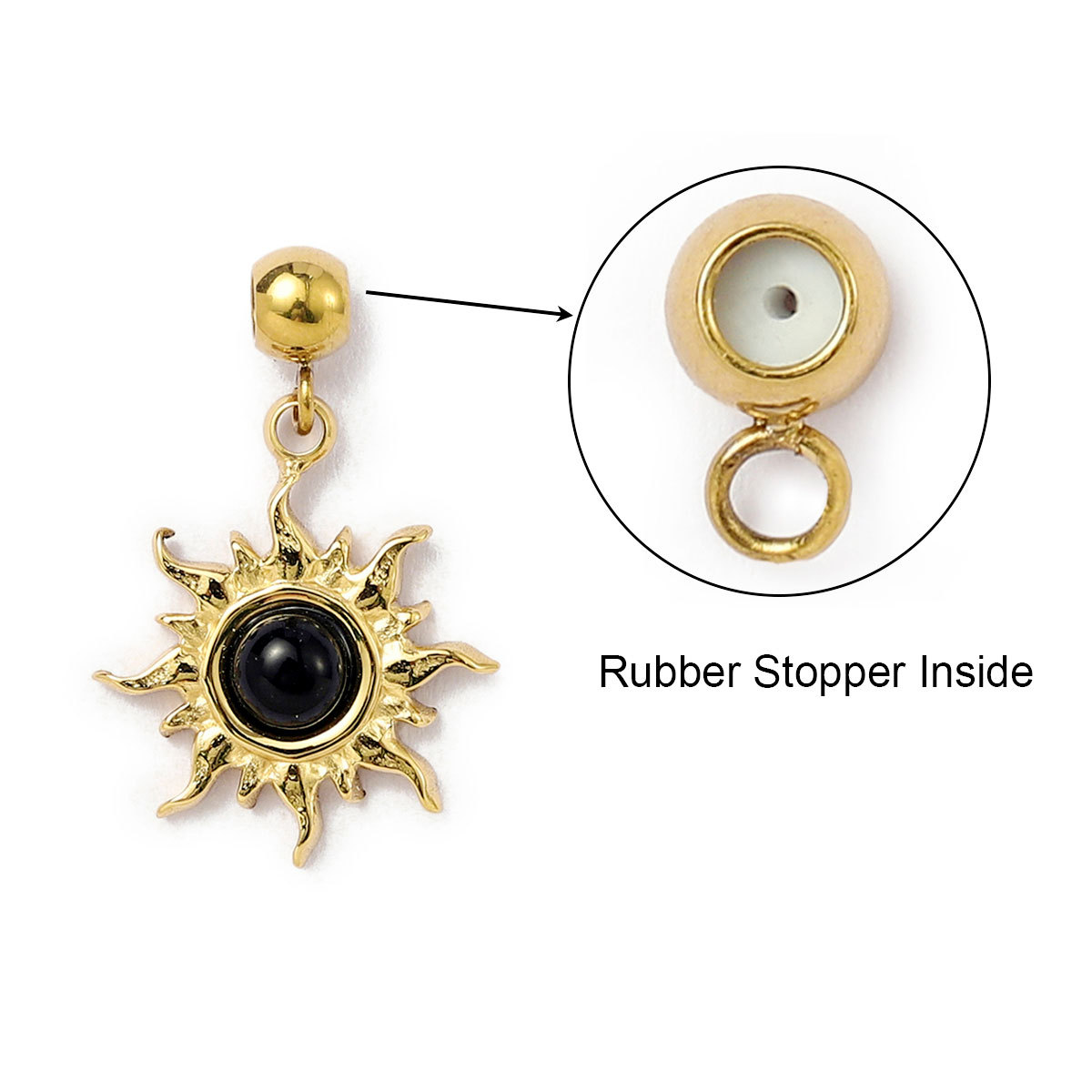 Rustfrit stål smykker Vedhæng, 304 rustfrit stål, med Natursten & Gummi, guldfarve belagt, du kan DIY & Micro Pave cubic zirconia, flere farver til valg, 3pc'er/Bag, Solgt af Bag