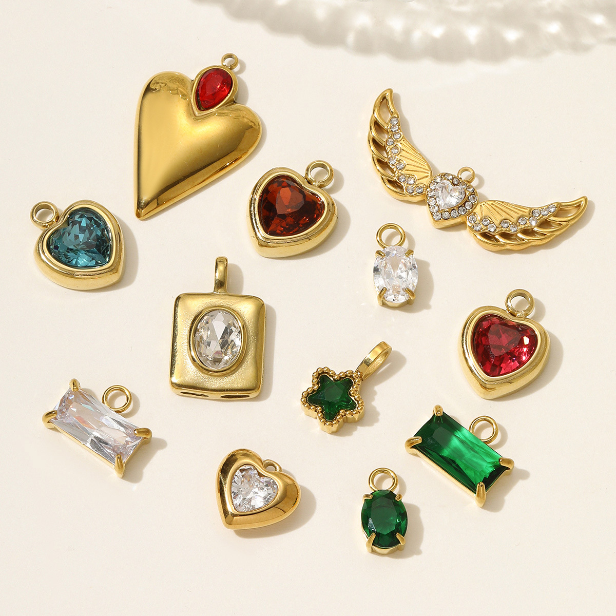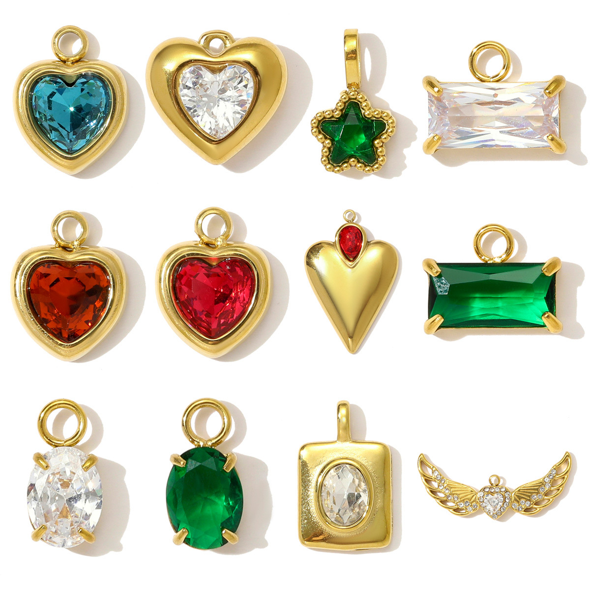 Rustfrit stål smykker Vedhæng, 304 rustfrit stål, med Glassten, guldfarve belagt, du kan DIY, flere farver til valg, 3pc'er/Bag, Solgt af Bag