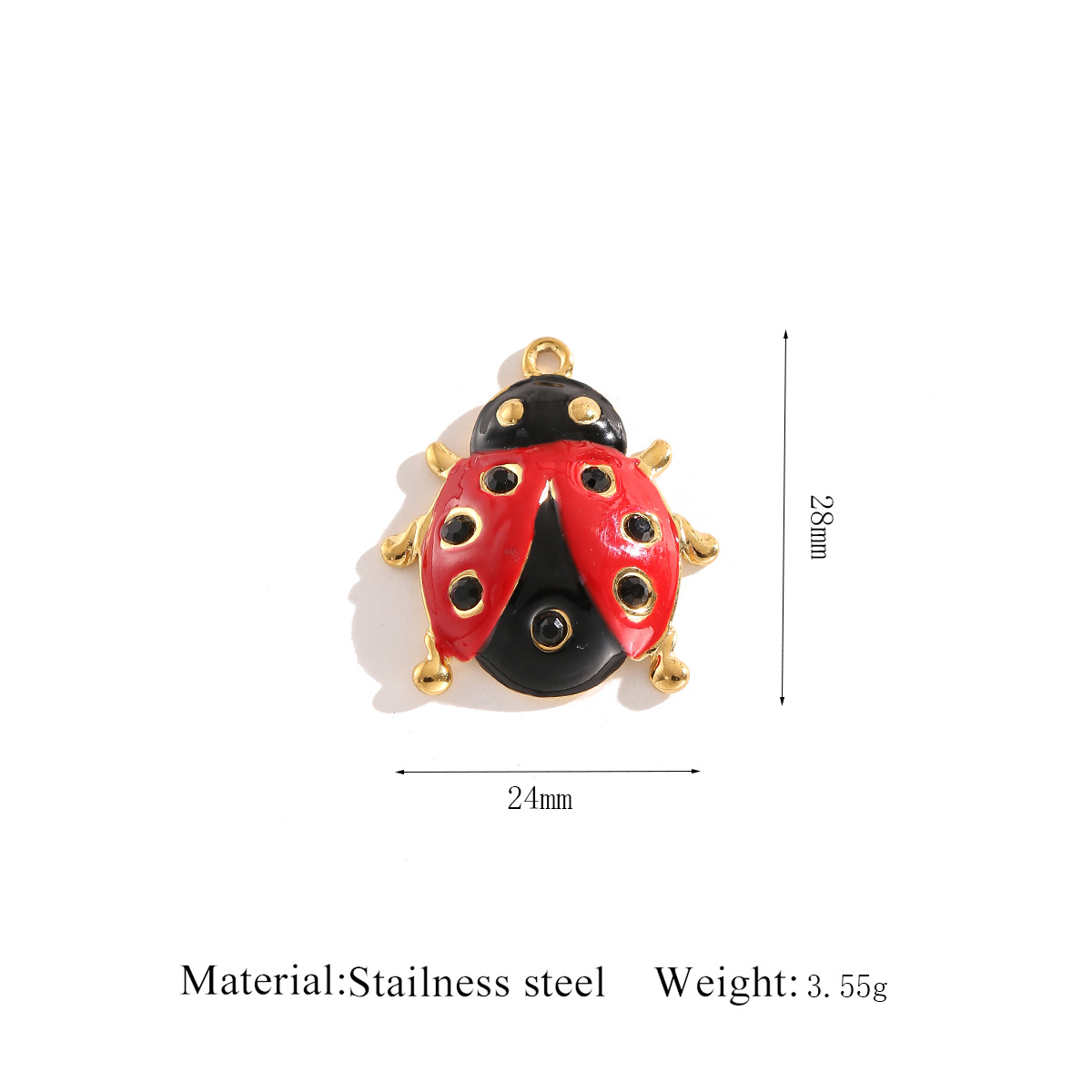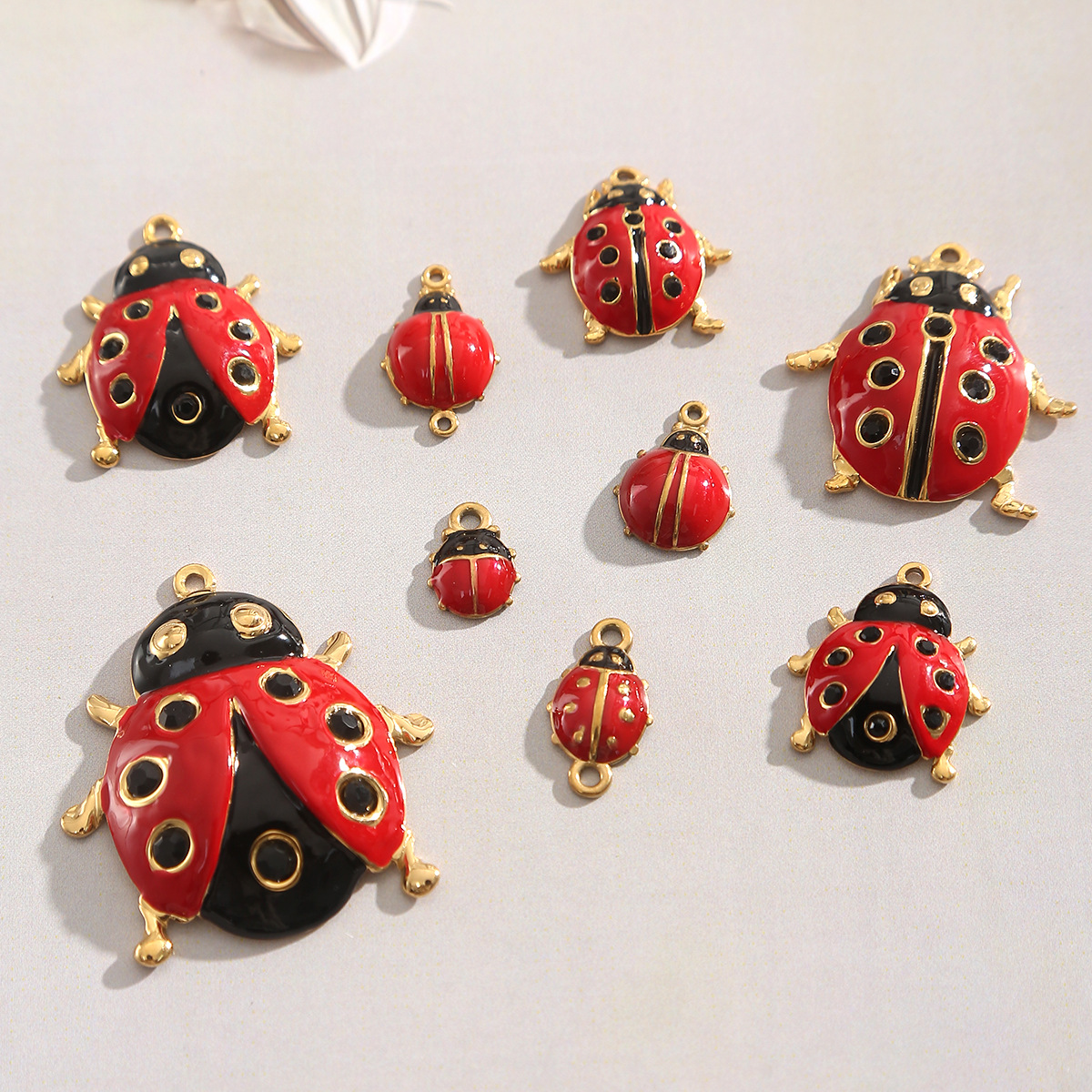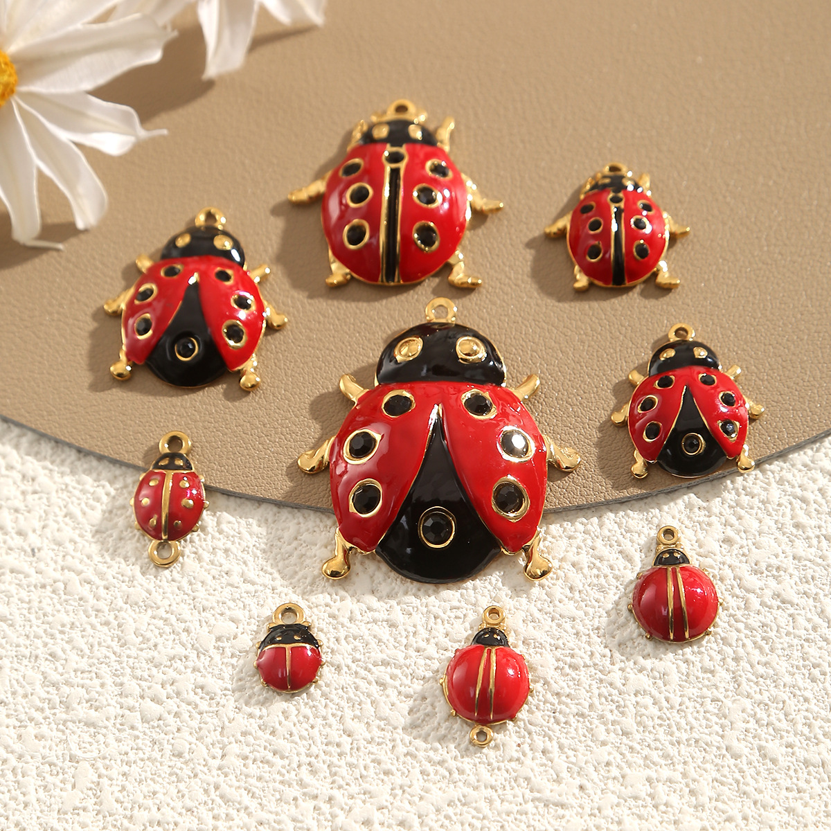 Rustfrit stål smykker Vedhæng, 304 rustfrit stål, Ladybug, forgyldt, du kan DIY & emalje, flere farver til valg, 100pc'er/Bag, Solgt af Bag