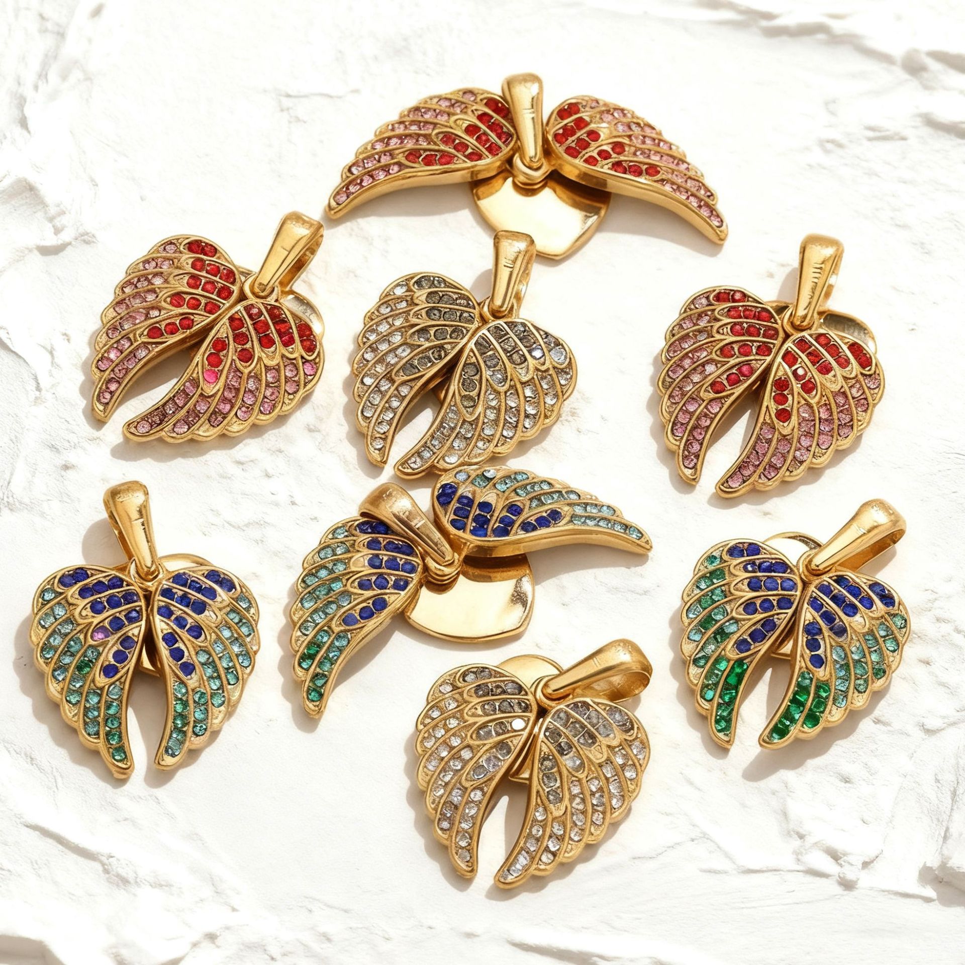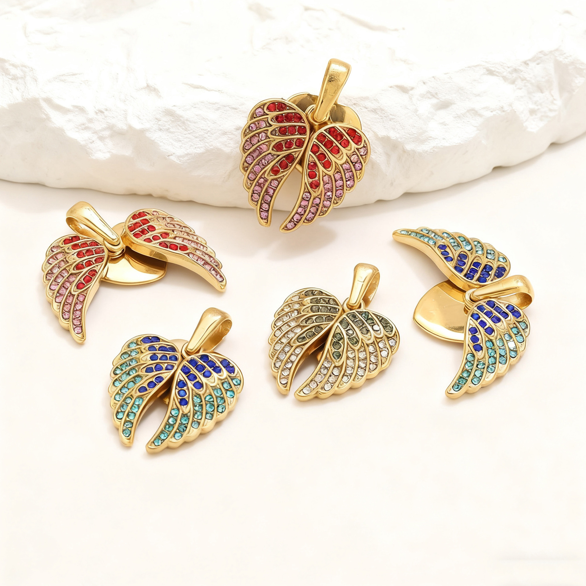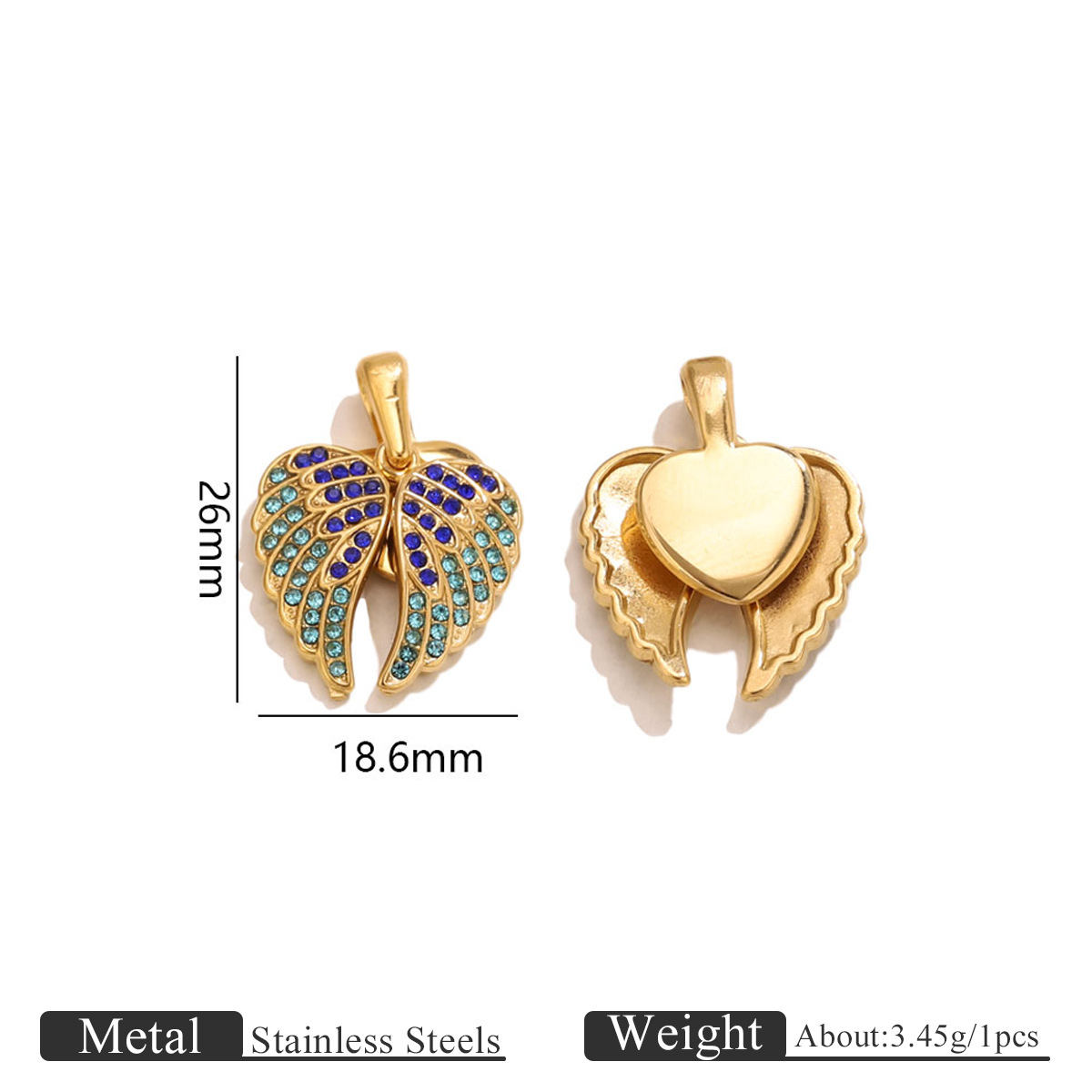 Rustfrit stål smykker Vedhæng, 304 rustfrit stål, Winged Heart, guldfarve belagt, du kan DIY & med rhinestone, flere farver til valg, 18.60x26mm, Solgt af PC
