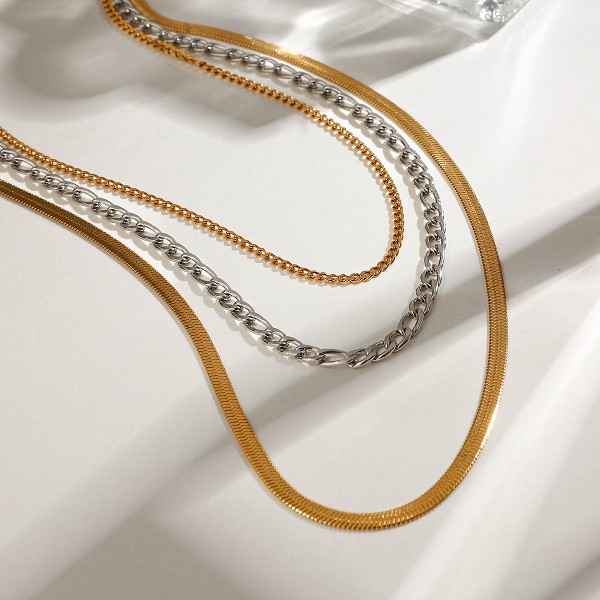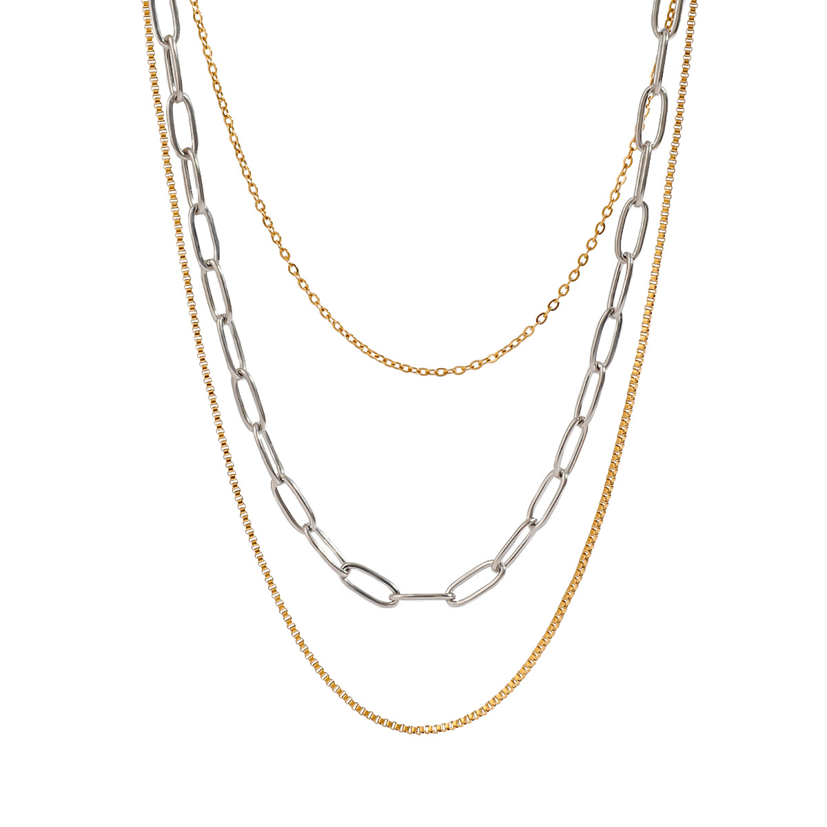 Rustfrit stål smykker halskæde, 304 rustfrit stål, forgyldt, tre lag & for kvinde & to tone, Solgt af PC