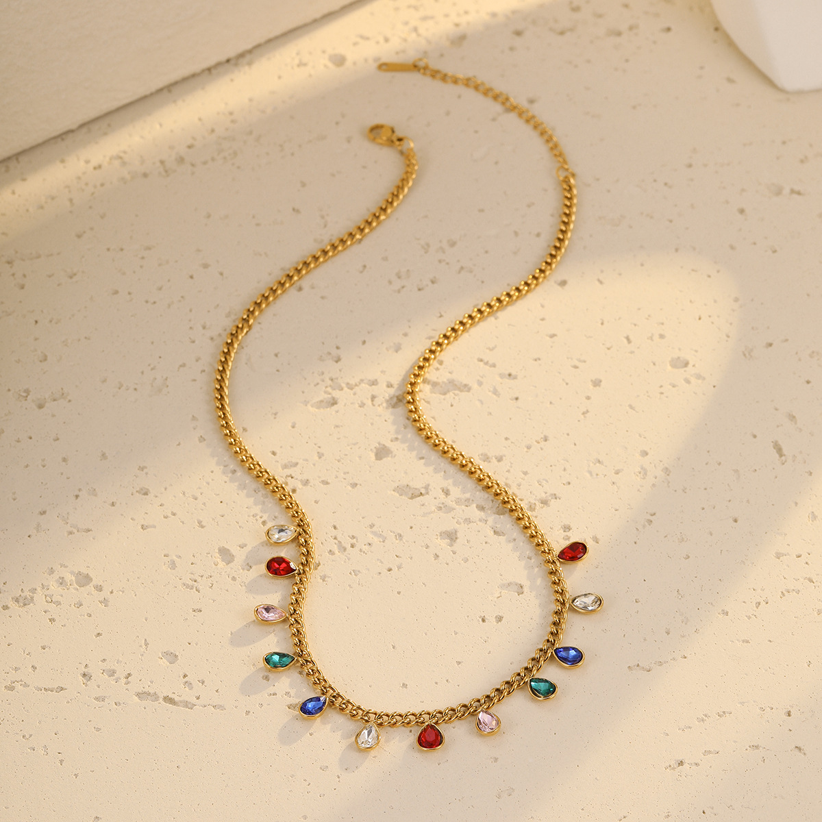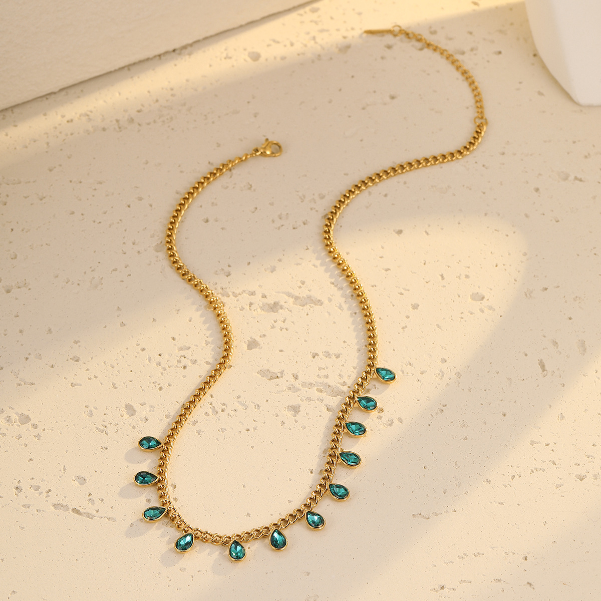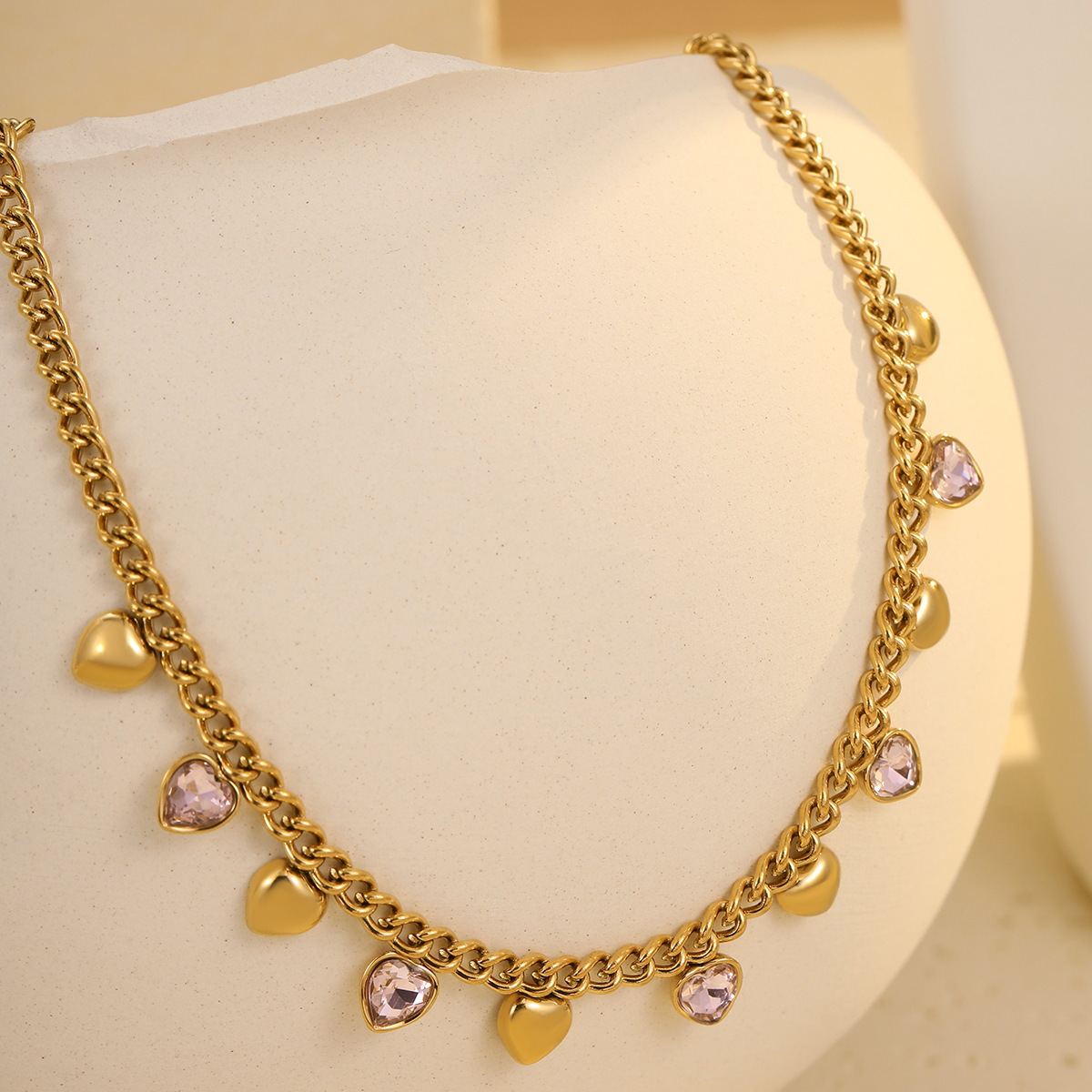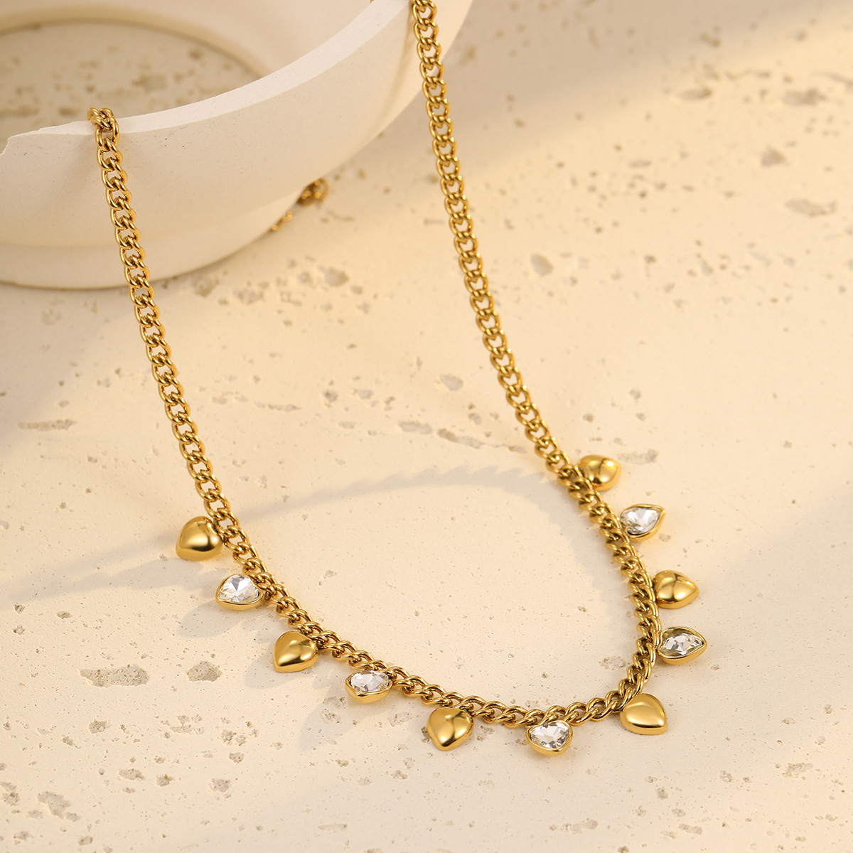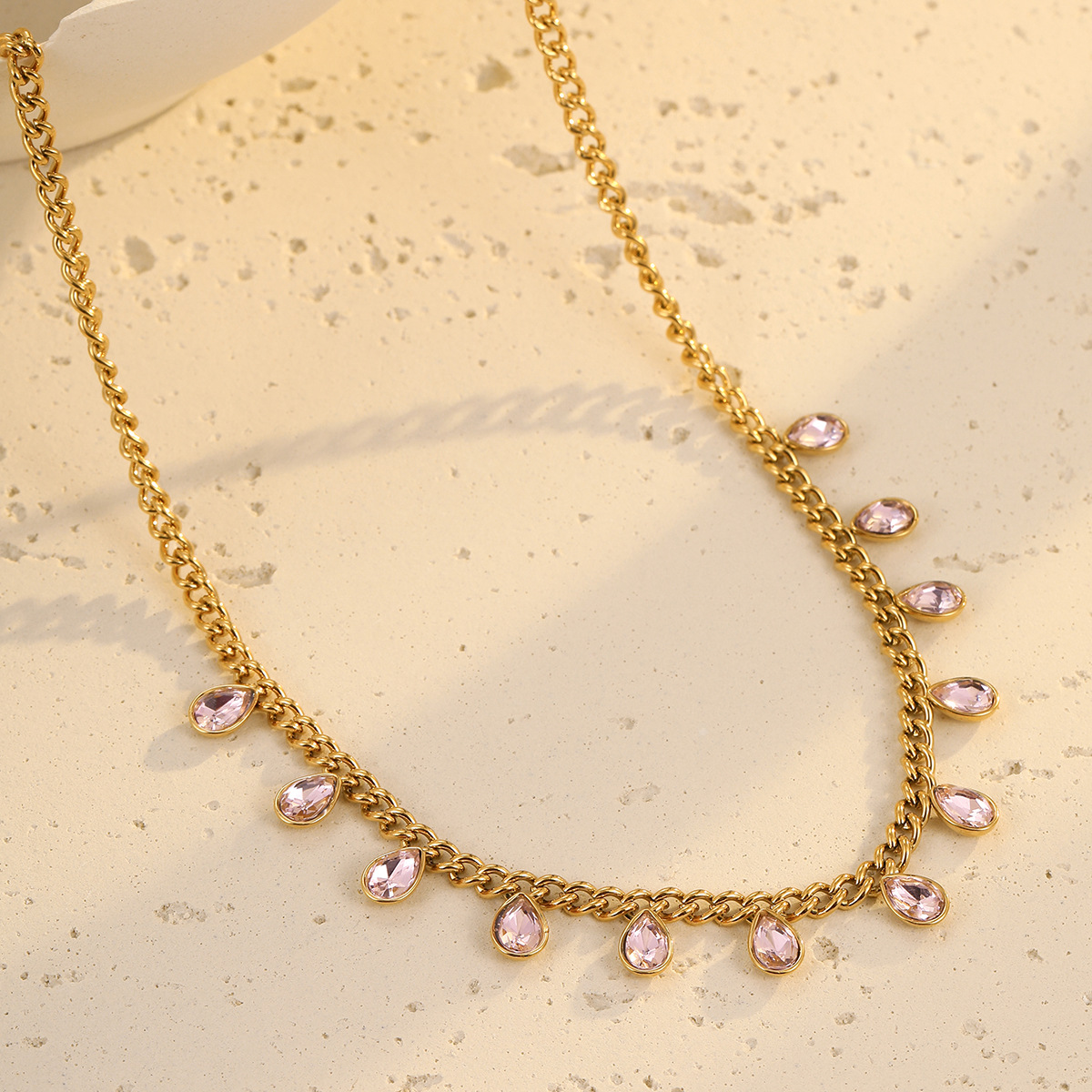 Rustfrit stål smykker halskæde, 304 rustfrit stål, med Cubic Zirconia, 18K forgyldt, mode smykker & forskellige stilarter for valg & for kvinde, Solgt af PC