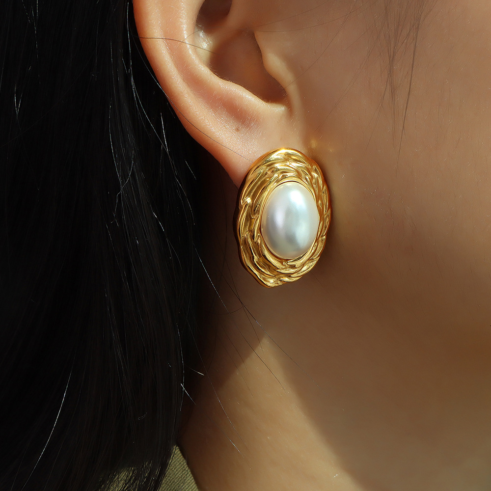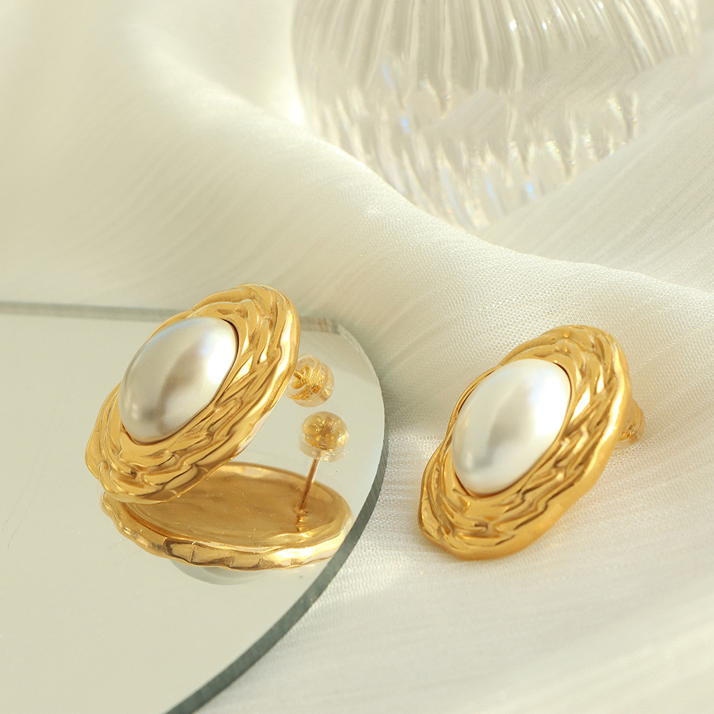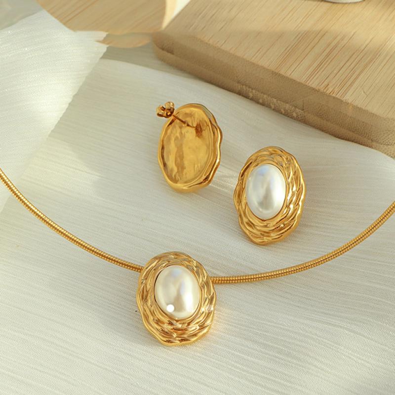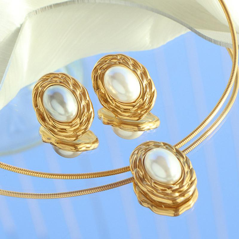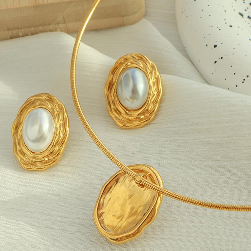 Rustfrit stål smykker sæt, 304 rustfrit stål, med Plastic Pearl, forgyldt, mode smykker & forskellige stilarter for valg & for kvinde, gylden, Solgt af PC