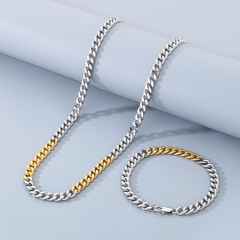 Rustfrit stål smykker sæt, armbånd & halskæde, 304 rustfrit stål, guldfarve belagt, mode smykker, flere farver til valg, Solgt af PC