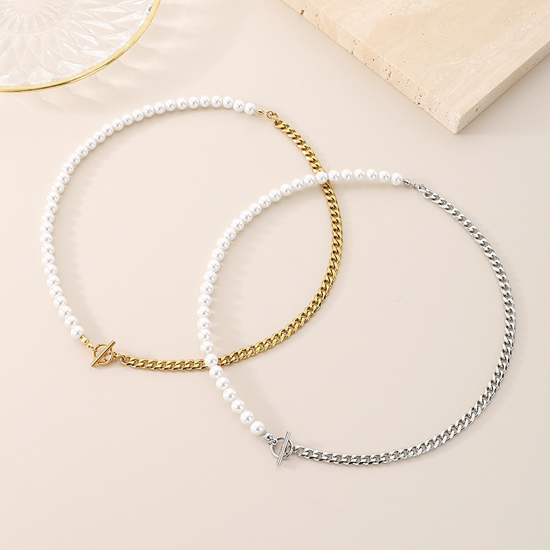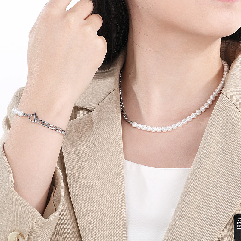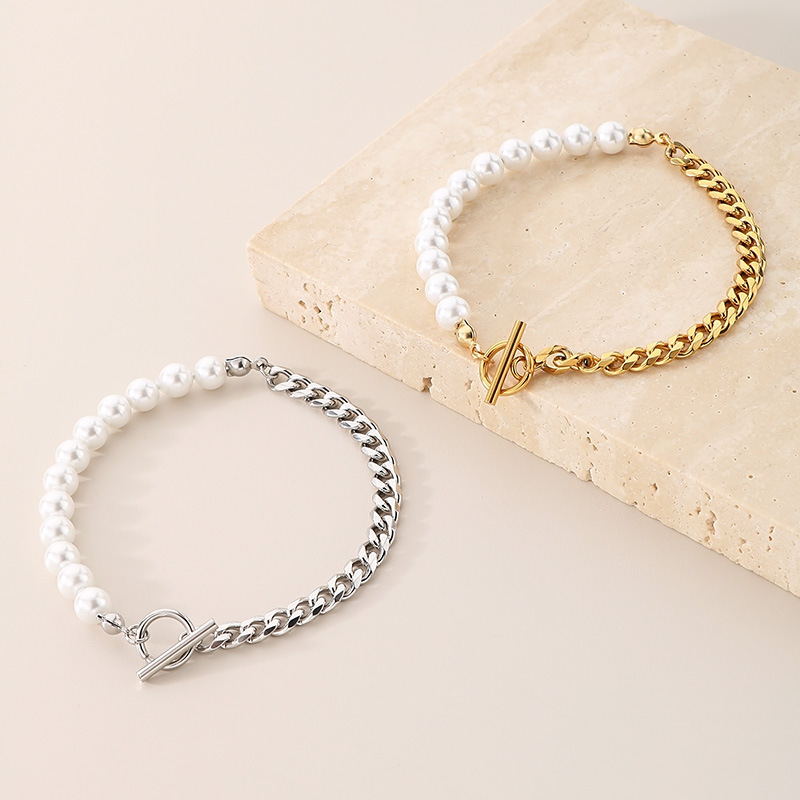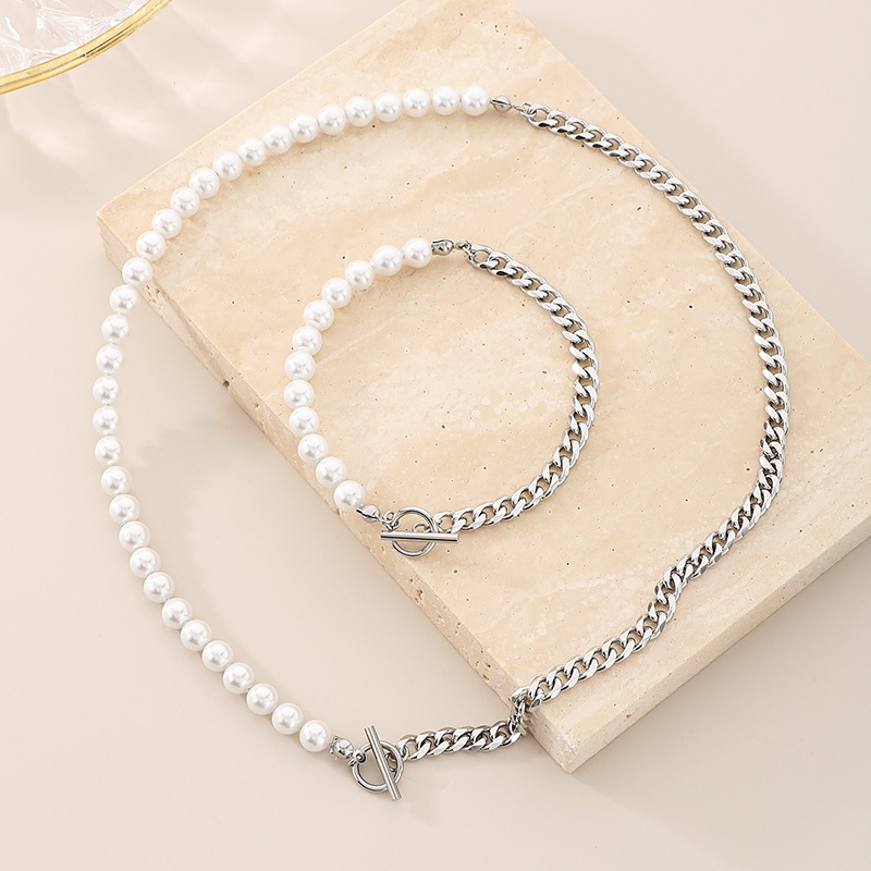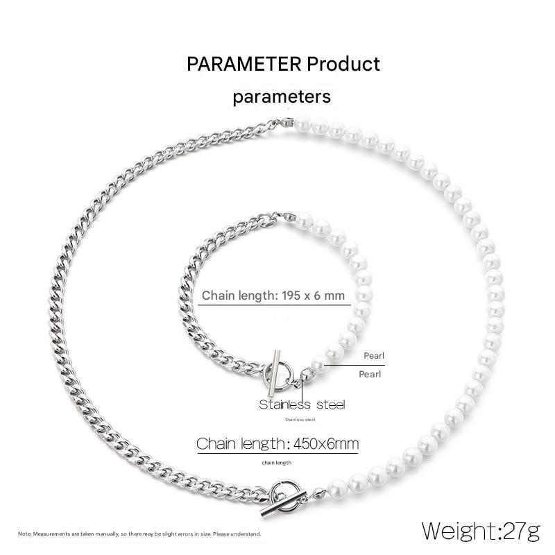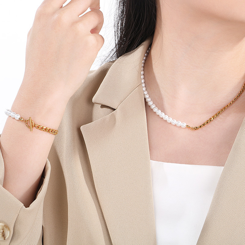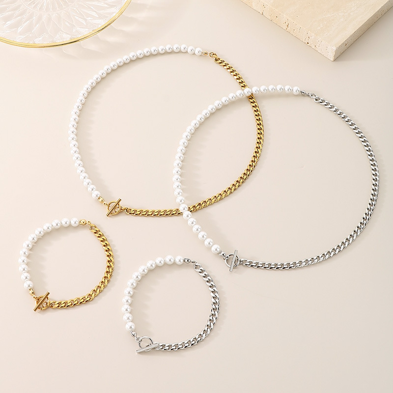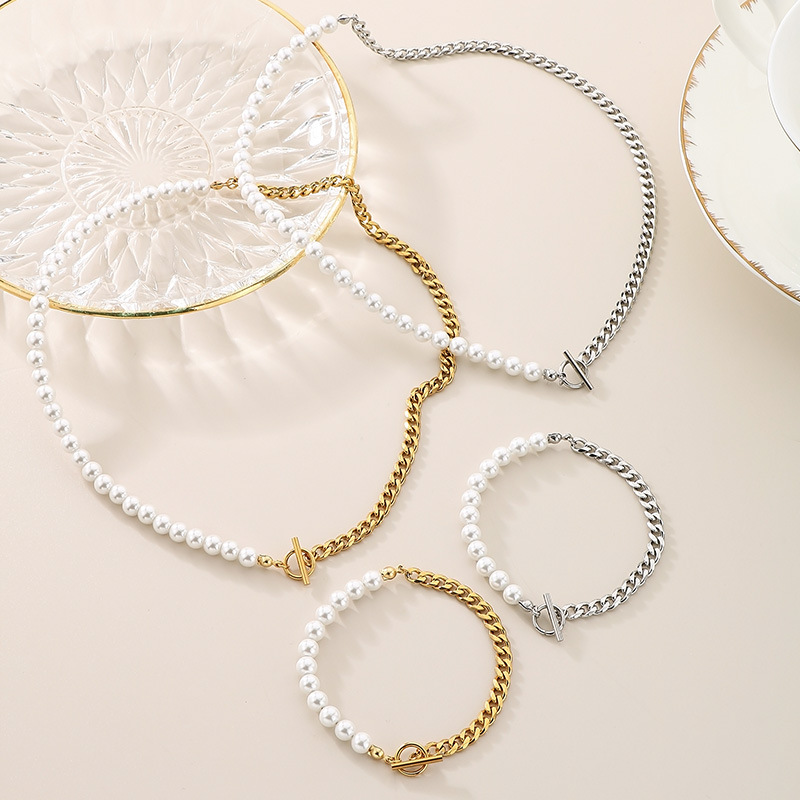 Rustfrit stål smykker sæt, armbånd & halskæde, 304 rustfrit stål, med Plastic Pearl, guldfarve belagt, mode smykker, flere farver til valg, Solgt af PC