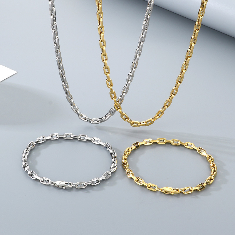 Rustfrit stål smykker sæt, armbånd & halskæde, 304 rustfrit stål, guldfarve belagt, mode smykker, flere farver til valg, Solgt af PC