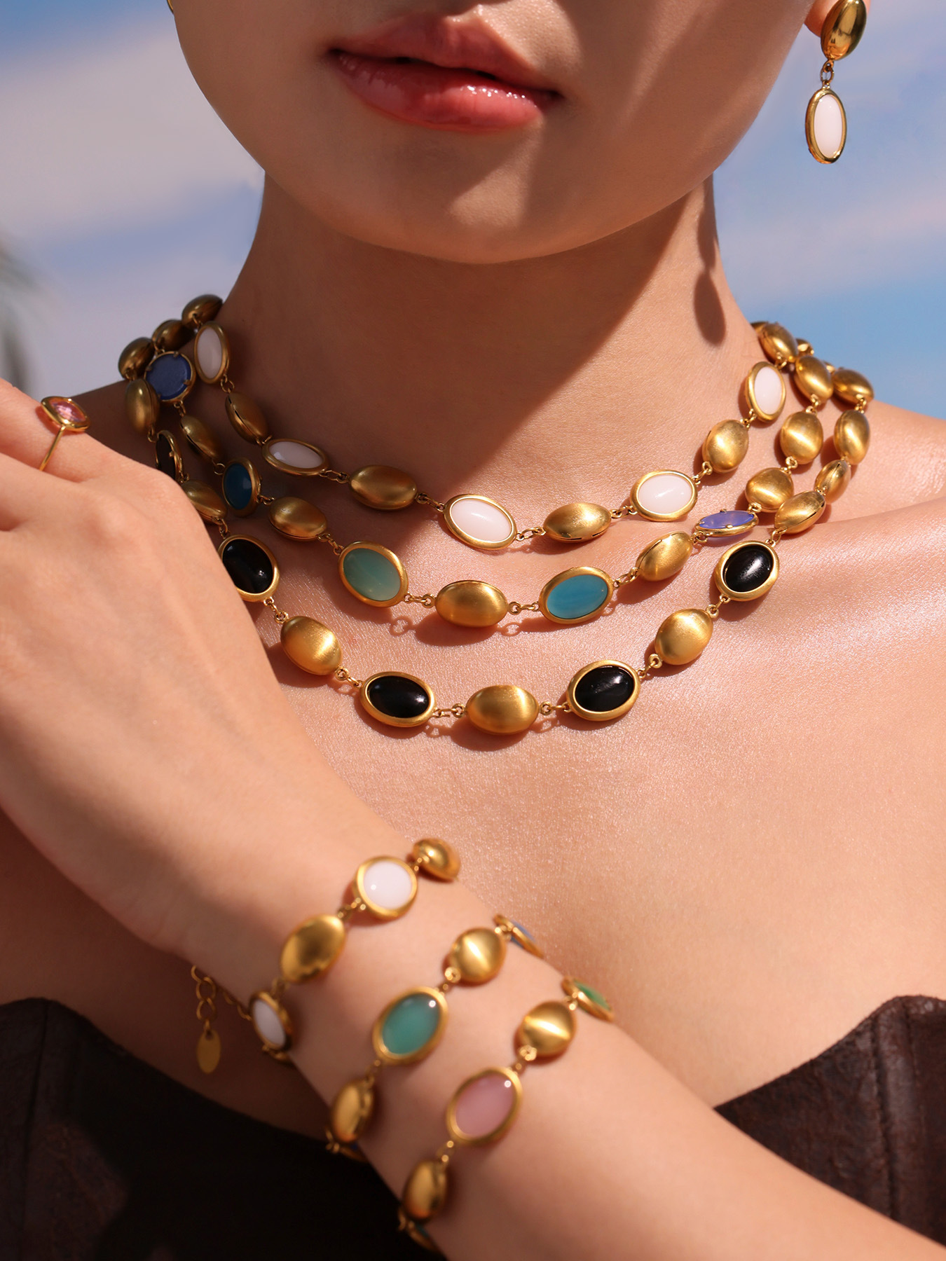 1:Txp269-golden black opal necklace 41+5cm2:Txp269-golden white opal necklace 41+5cm3:Txp269-golden green opal necklace 41+5cm4:Txp269-golden blue opal necklace 41+5cm5:Txp269-gold pink opal necklace 41+5cm6:Txp269-gold mixed opal necklace 41+5cm7:Txe269-gold black opal bracelet 17+5cm8:Txe269-golden white opal bracelet 17+5cm9:Txe269-golden green opal bracelet 17+5cm10:Txe269-golden blue opal bracelet 17+5cm11:Txe269-gold pink opal bracelet 17+5cm12:Txe269-gold mixed opal bracelet 17+5cm13:Txf269-gold black opal earrings14:Txf269-golden white opal earrings15:Txf269-gold green opal earrings16:Txf269-gold blue opal earrings17:Txf269-gold pink opal earrings