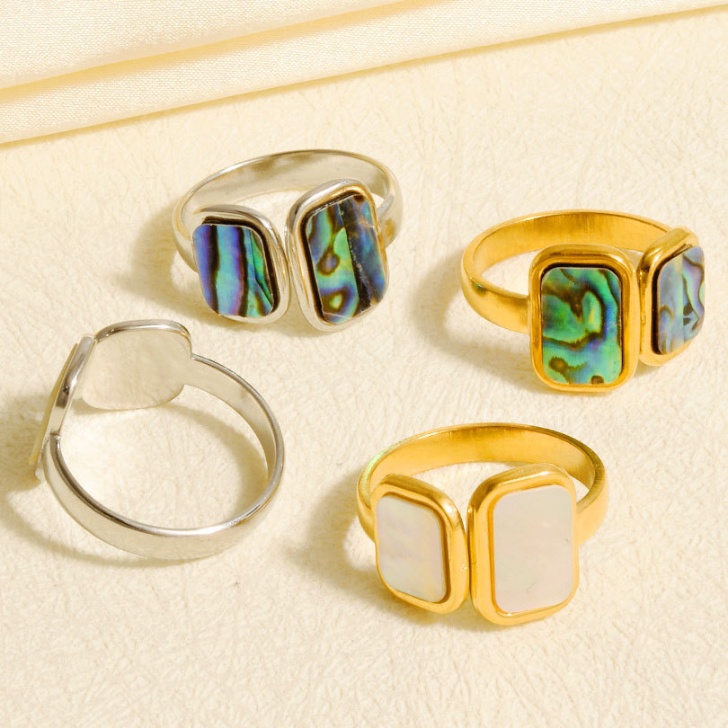 Shell Finger Ringe, Abalone Shell, med 304 rustfrit stål, mode smykker, flere farver til valg, Solgt af PC