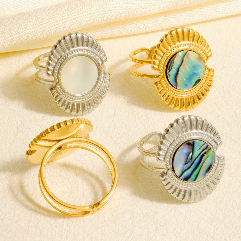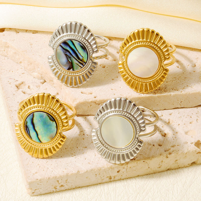 Shell Finger Ringe, Abalone Shell, med 304 rustfrit stål, mode smykker, flere farver til valg, Solgt af PC