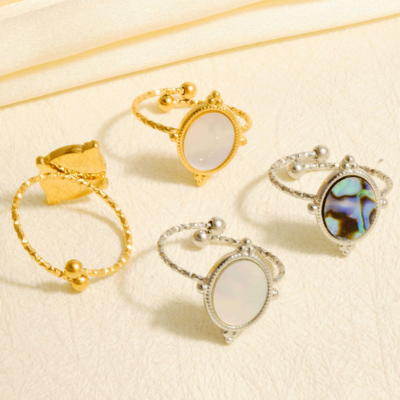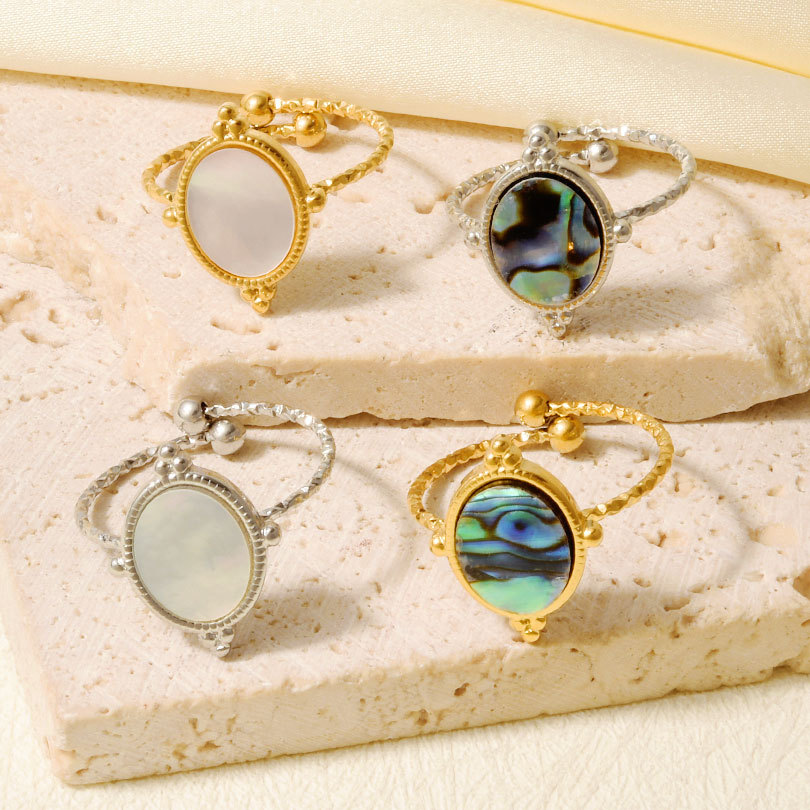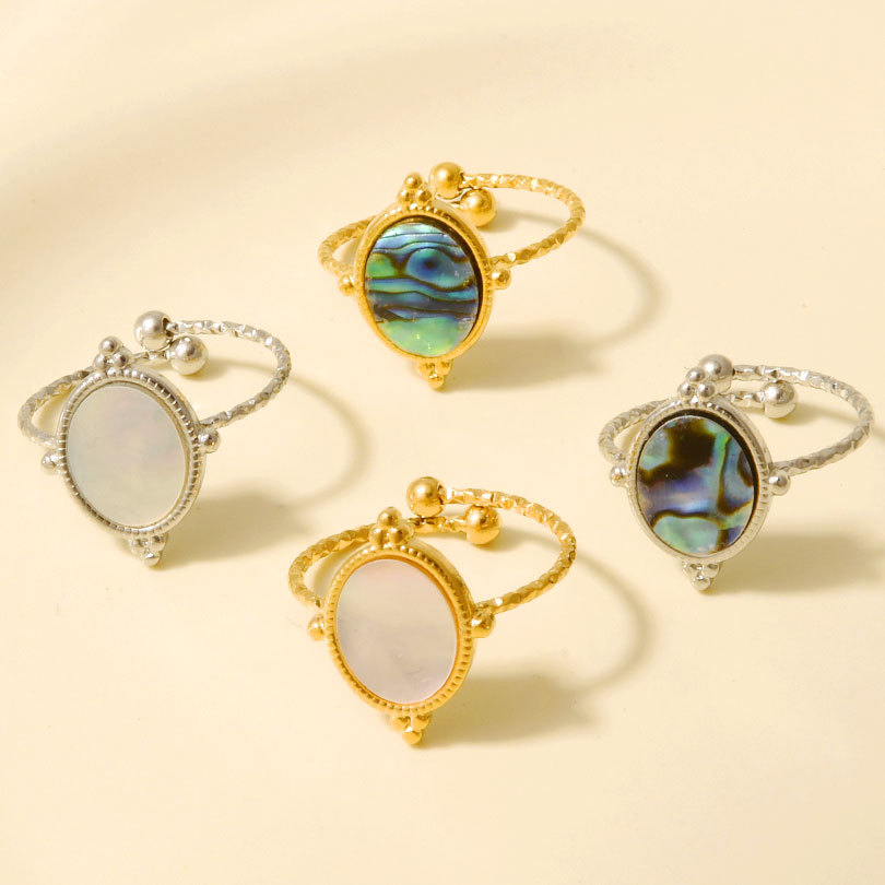 Shell Finger Ringe, Abalone Shell, med 304 rustfrit stål, mode smykker, flere farver til valg, Solgt af PC