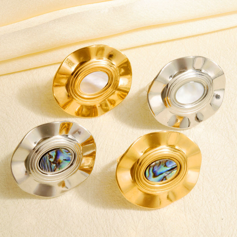 Shell Finger Ringe, Abalone Shell, med 304 rustfrit stål, mode smykker, flere farver til valg, Solgt af PC