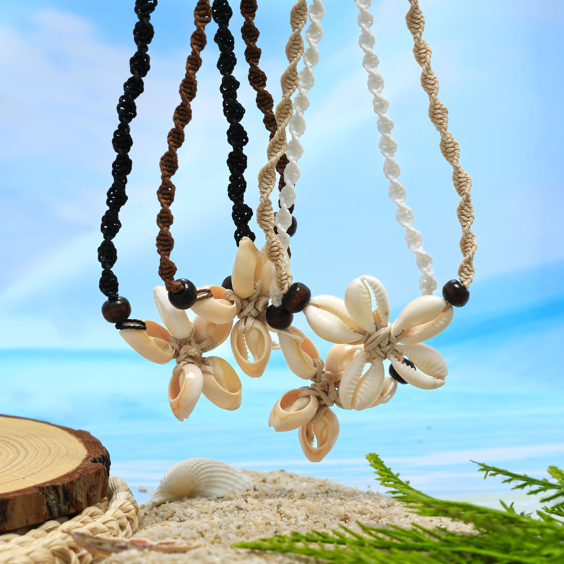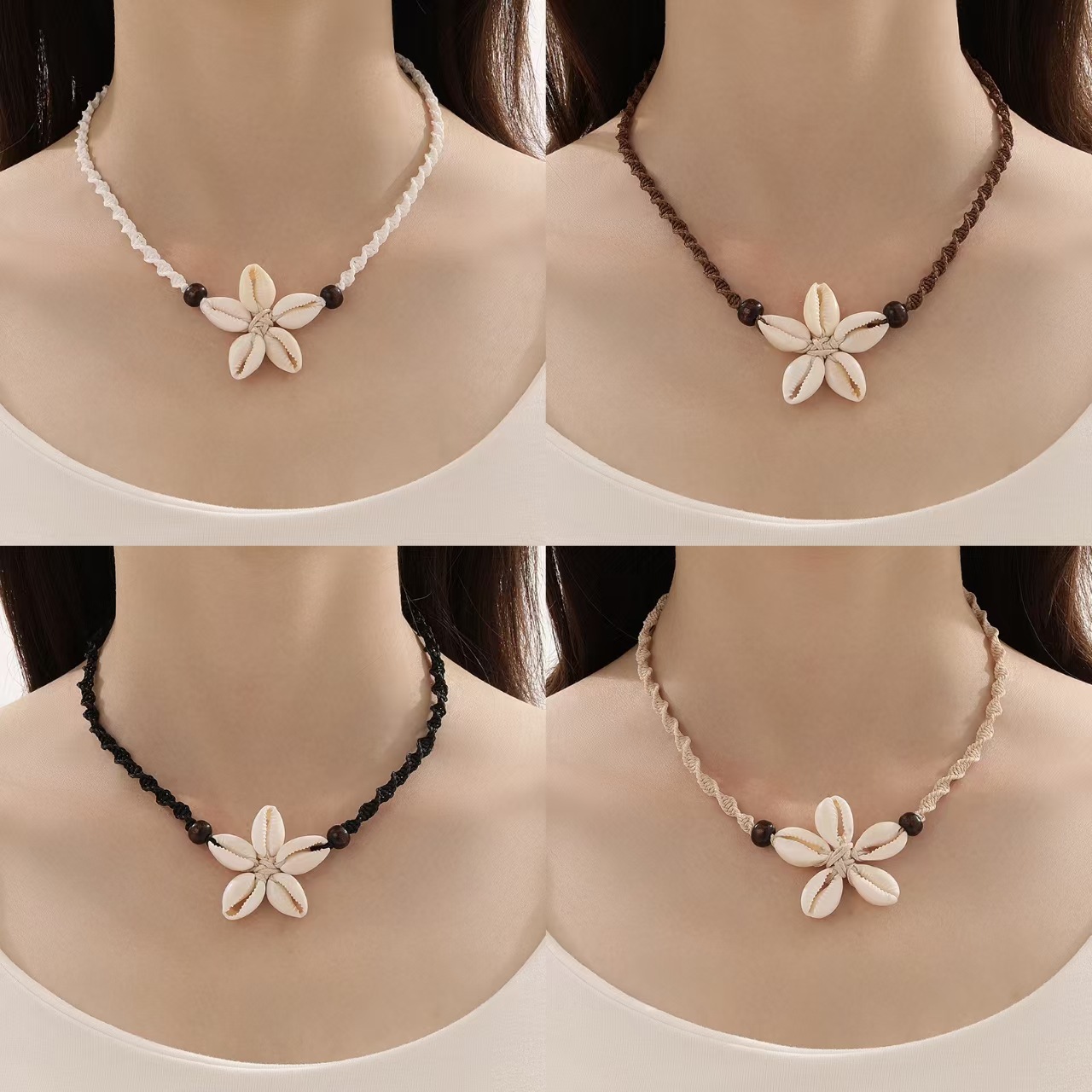 Shell Halskæde, med Terylene Cord & Træ, Flower, håndlavet, justerbar & for kvinde, flere farver til valg, Længde Ca. 24.4 inch, Solgt af PC