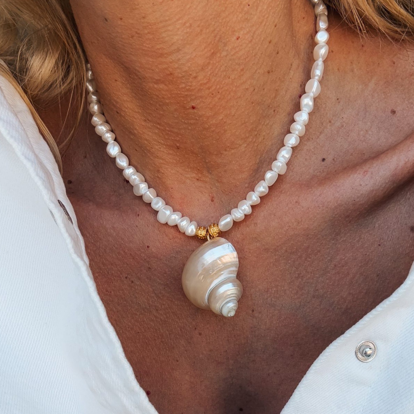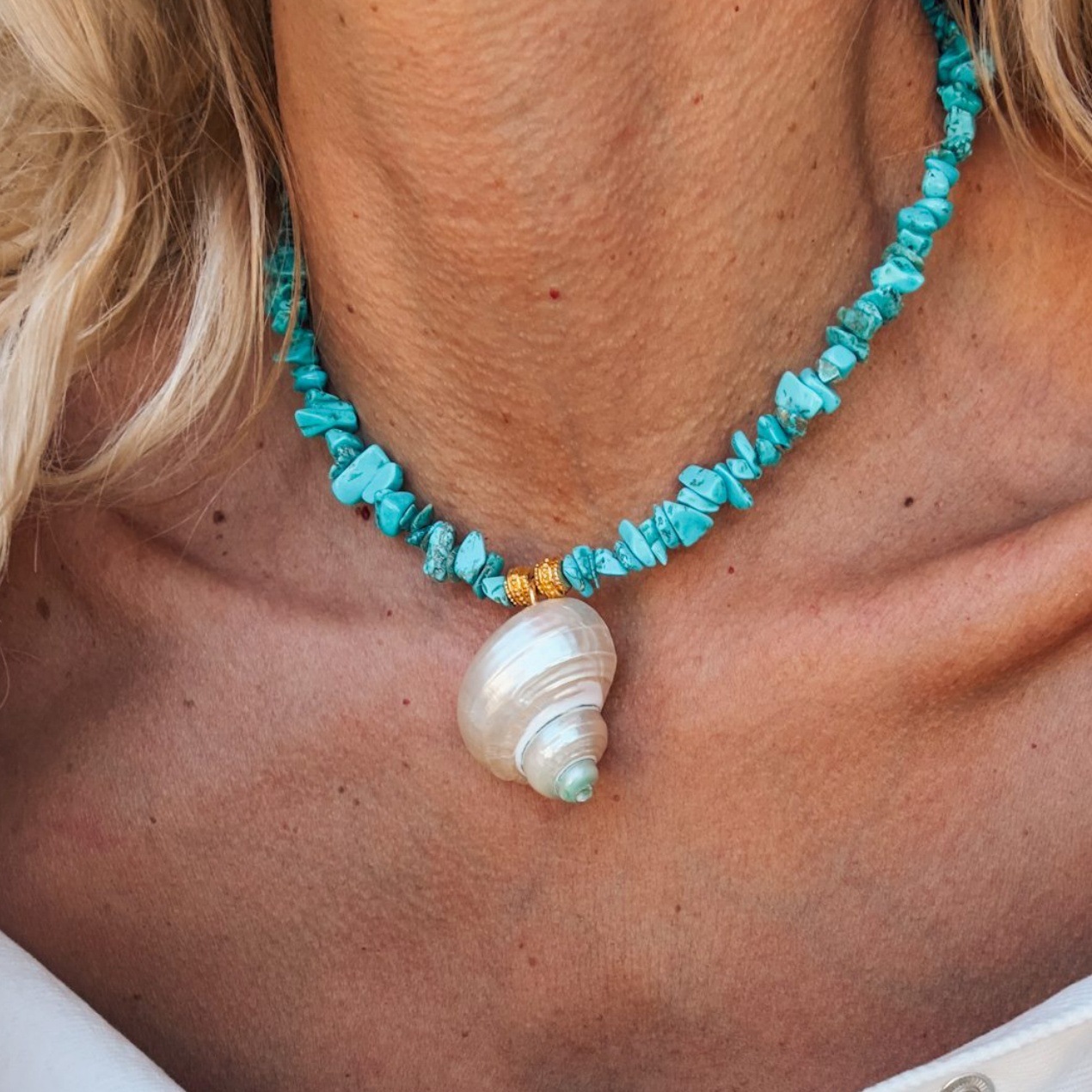 Shell Halskæder, Plastic Pearl, med turkis & Shell, forgyldt, mode smykker & for kvinde, Solgt af PC
