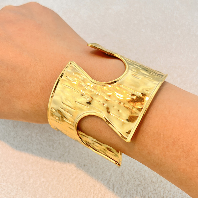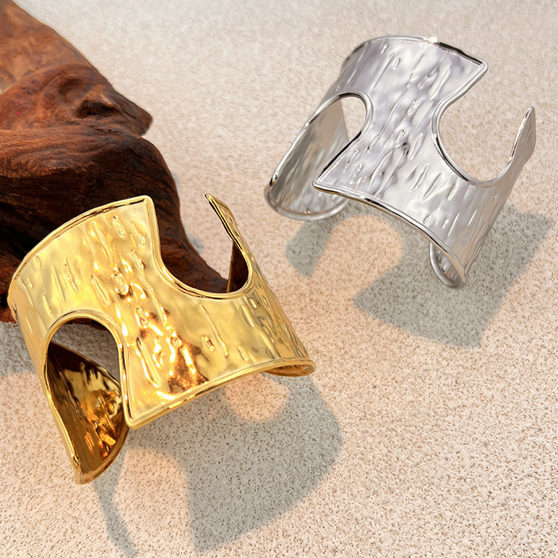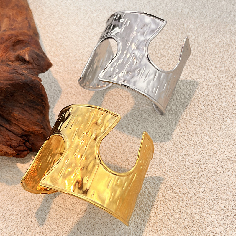 Stainless Steel Cuff Bangle, forgyldt, for kvinde, flere farver til valg, 56mm, Indvendig diameter:Ca. 63mm, Solgt af PC