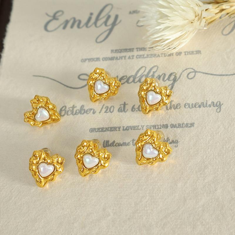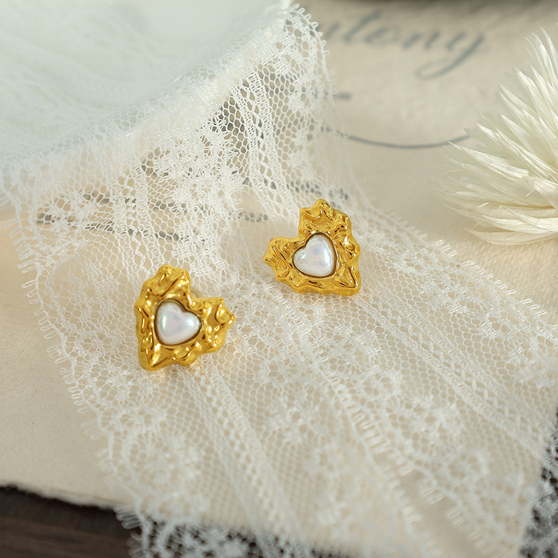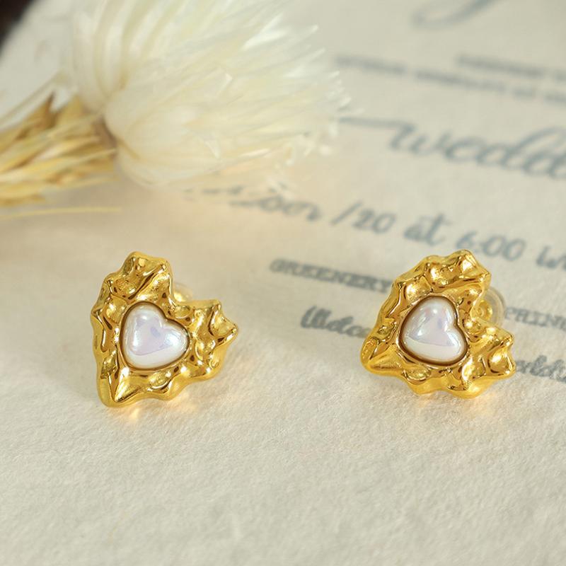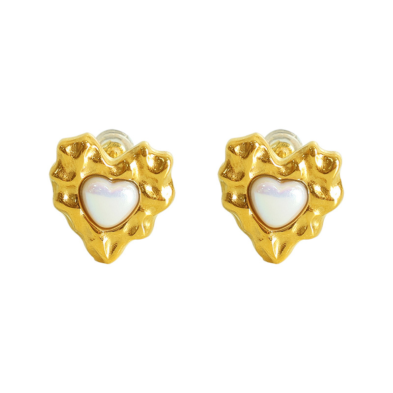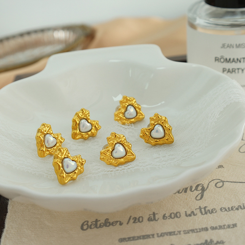Stainless Steel Stud Øreringe, 304 rustfrit stål, med Plastic Pearl, Heart, forgyldt, mode smykker & for kvinde, gylden, 15x15mm, Solgt af par
