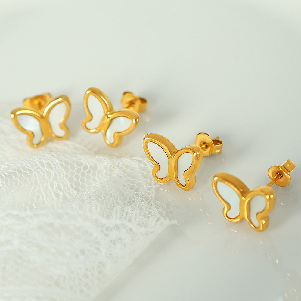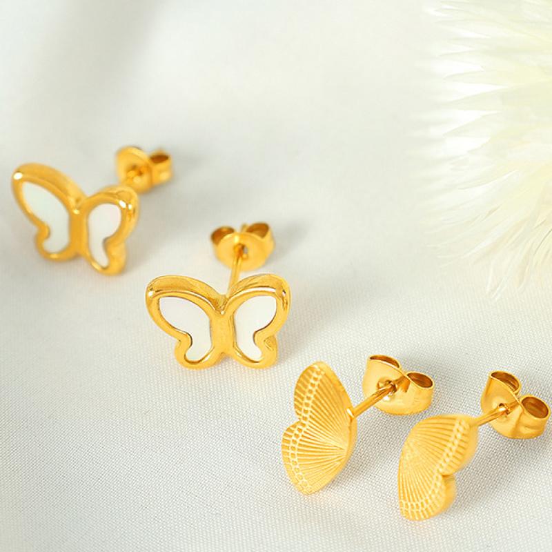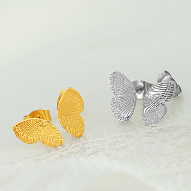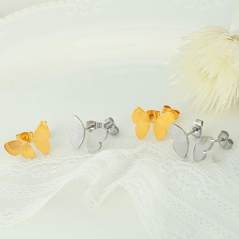 Stainless Steel Stud Øreringe, 304 rustfrit stål, Butterfly, forgyldt, mode smykker & forskellige stilarter for valg & for kvinde, flere farver til valg, Solgt af par