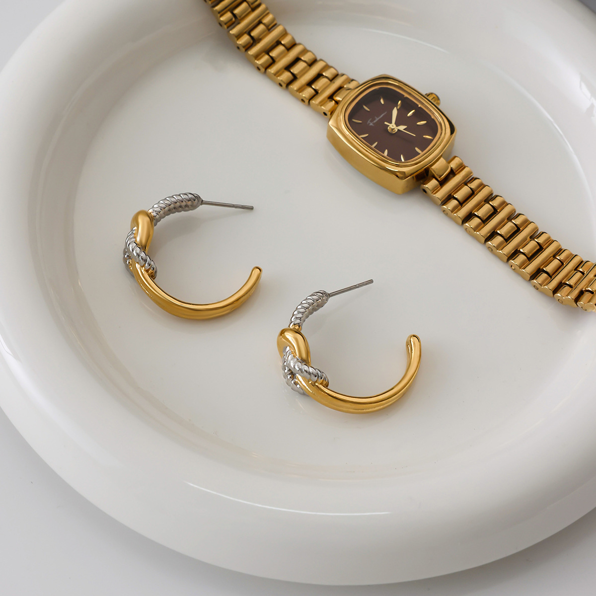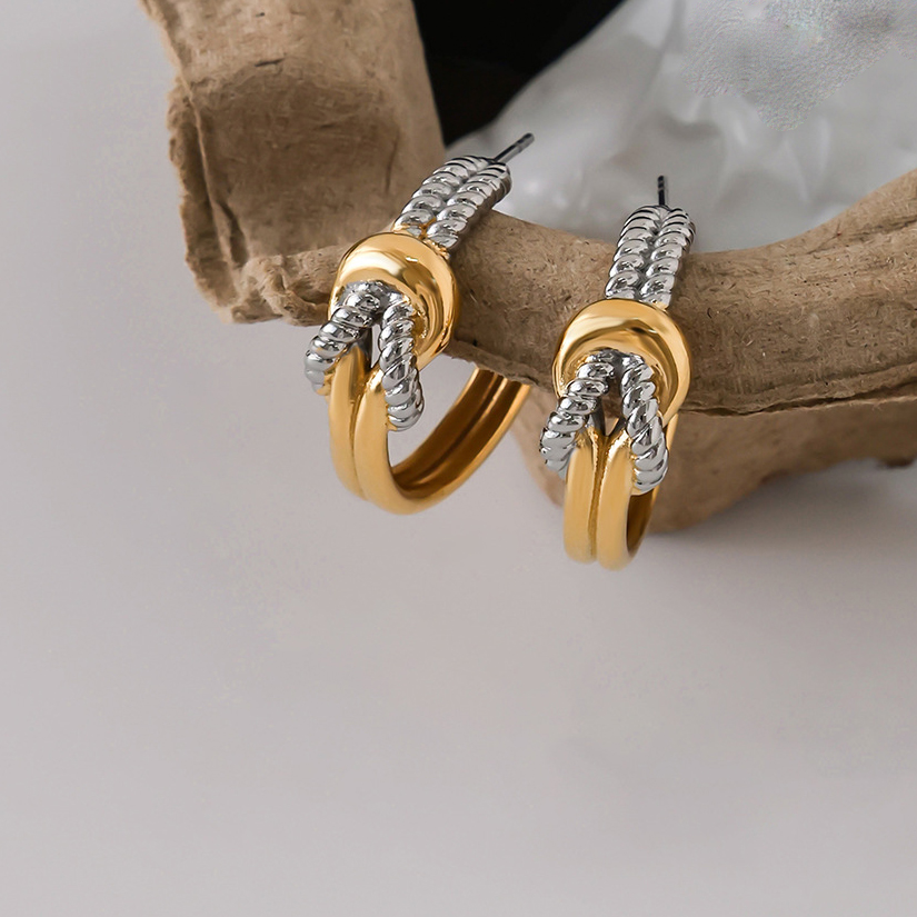 Stainless Steel Stud Øreringe, 304 rustfrit stål, forgyldt, for kvinde & to tone & hule, Solgt af par