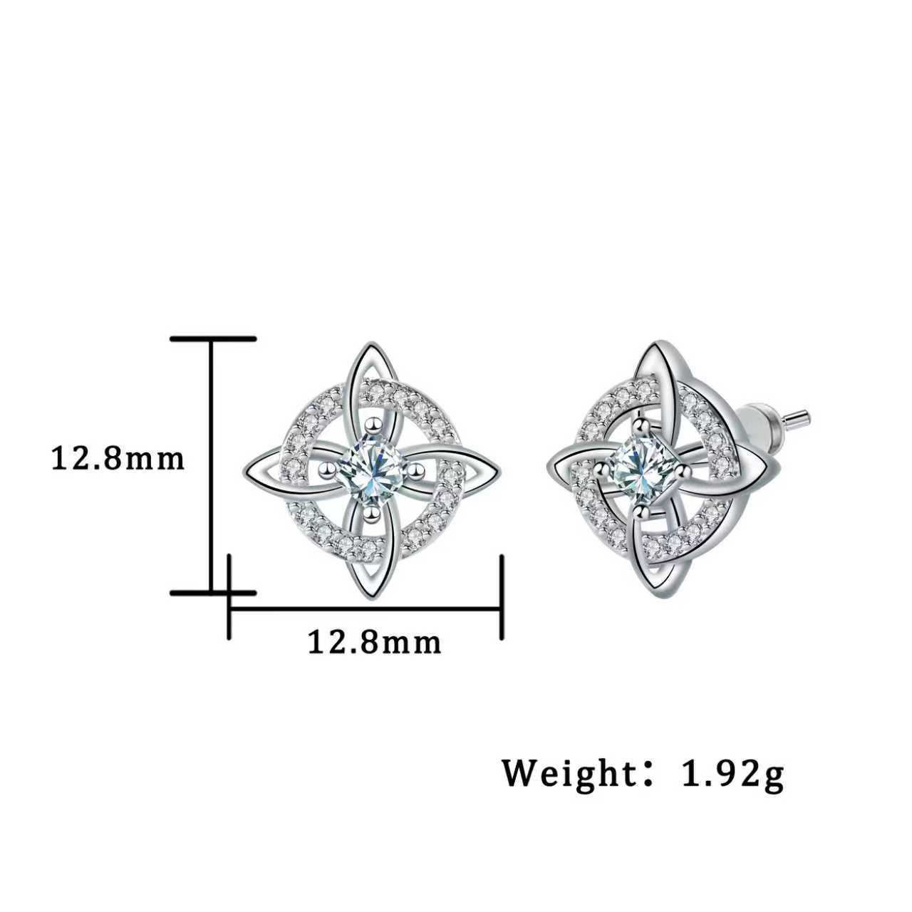 Terningformet Zirkon Micro Pave Messing Øreringe, sølvfarvet forgyldt, Micro Pave cubic zirconia & for kvinde, 12.80x12.80mm, Solgt af par
