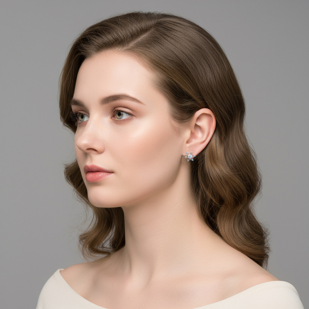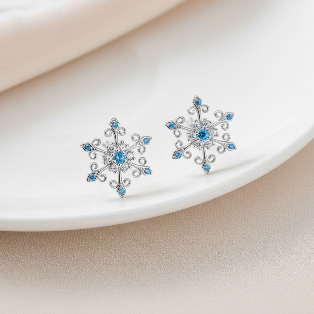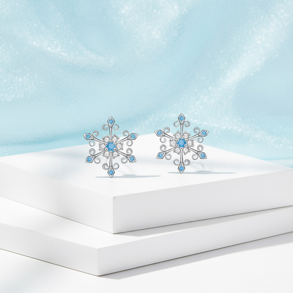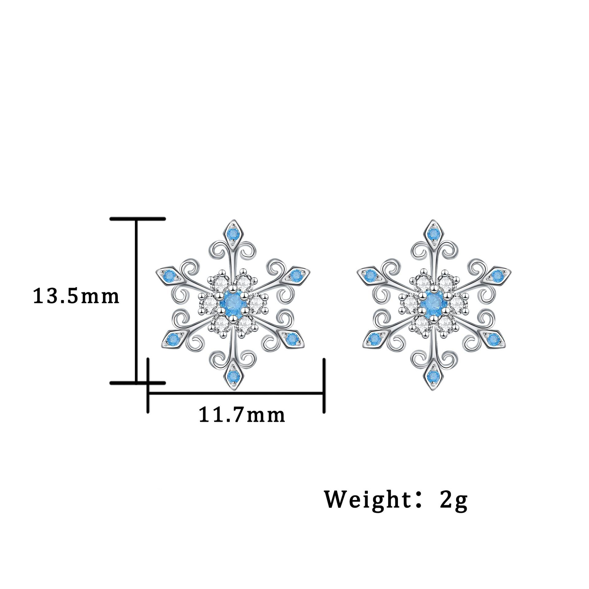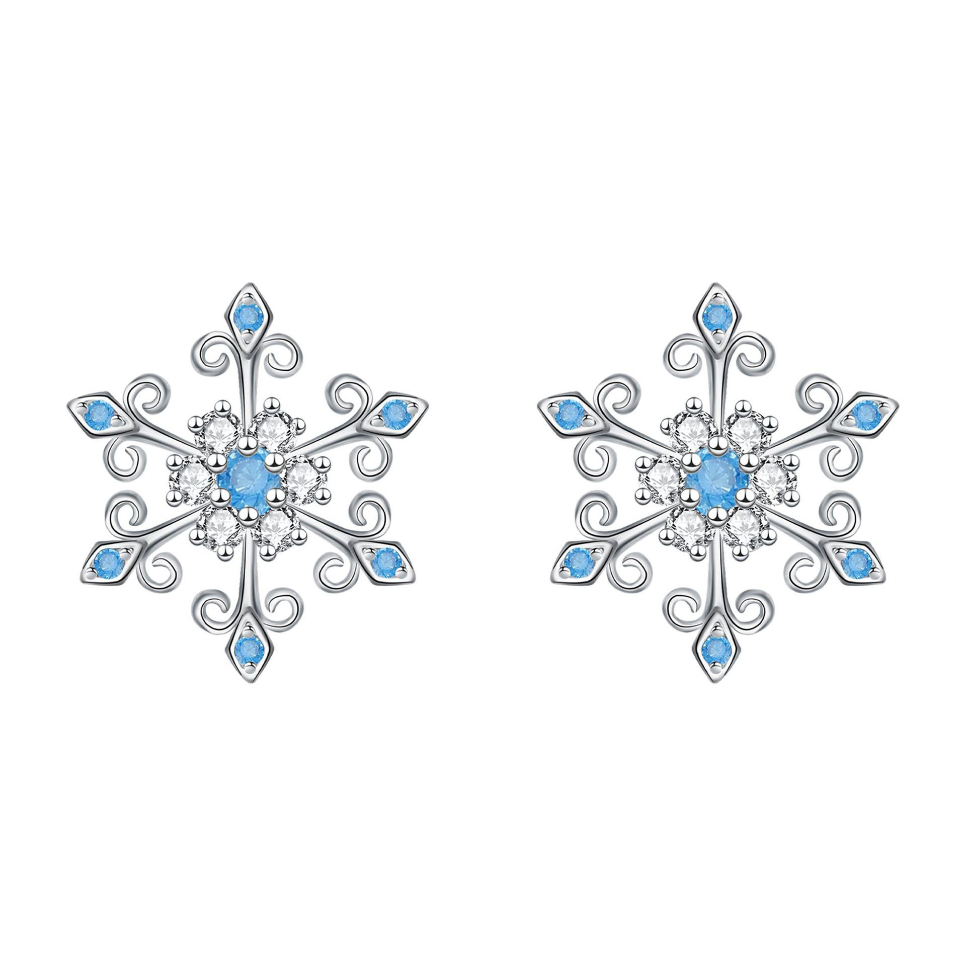 Terningformet Zirkon Micro Pave Messing Øreringe, Snowflake, sølvfarvet forgyldt, Micro Pave cubic zirconia & for kvinde, blå, 11.70x13.50mm, Solgt af par