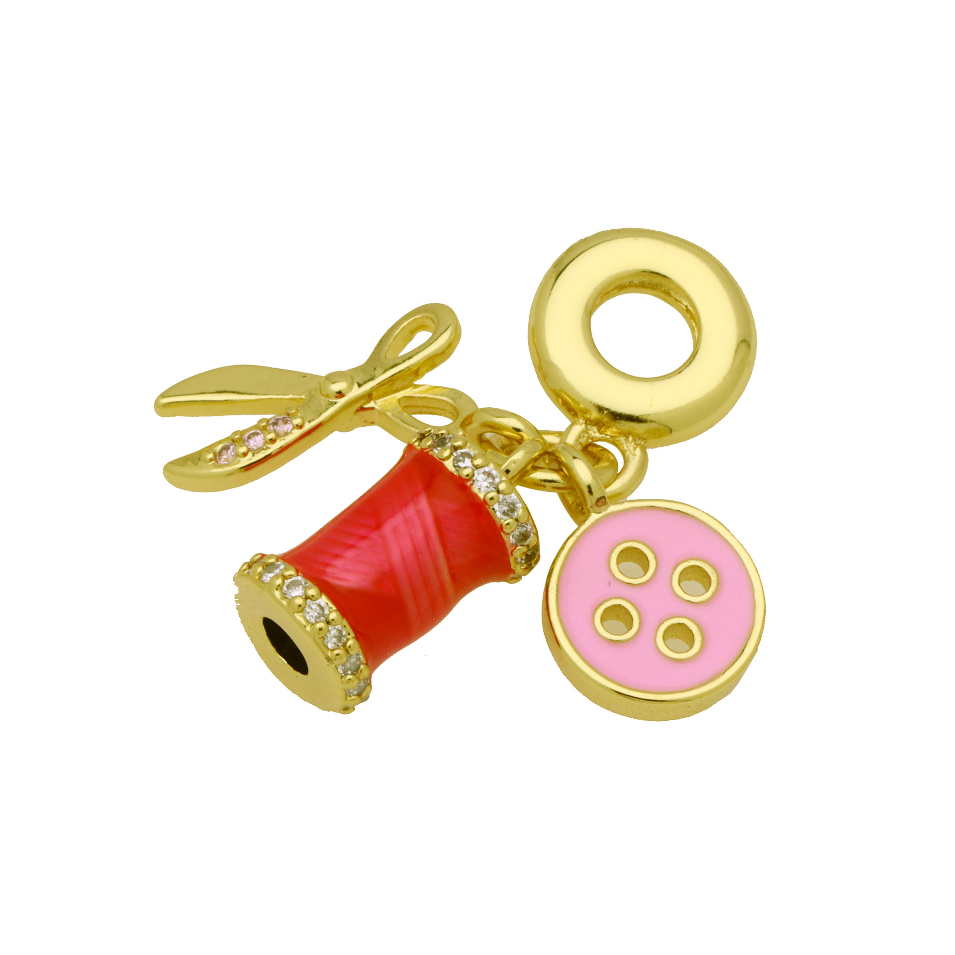 Terningformet Zirkon Micro Pave Messing vedhæng, guldfarve belagt, Anden figur til valg & du kan DIY & Micro Pave cubic zirconia & emalje, flere farver til valg, nikkel, bly & cadmium fri, 3pc'er/Bag, Solgt af Bag