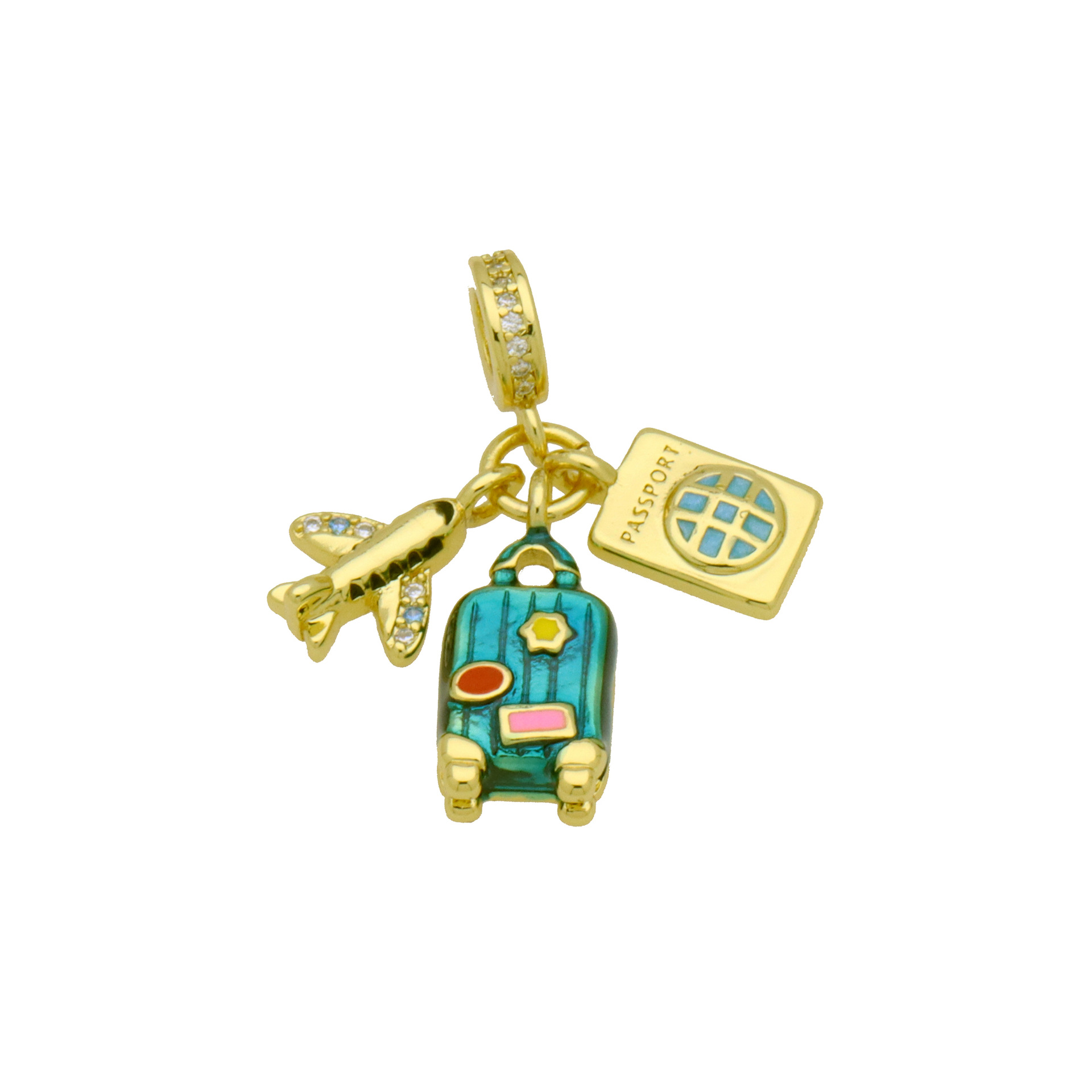 Terningformet Zirkon Micro Pave Messing vedhæng, guldfarve belagt, Anden figur til valg & du kan DIY & Micro Pave cubic zirconia & emalje, flere farver til valg, nikkel, bly & cadmium fri, 3pc'er/Bag, Solgt af Bag