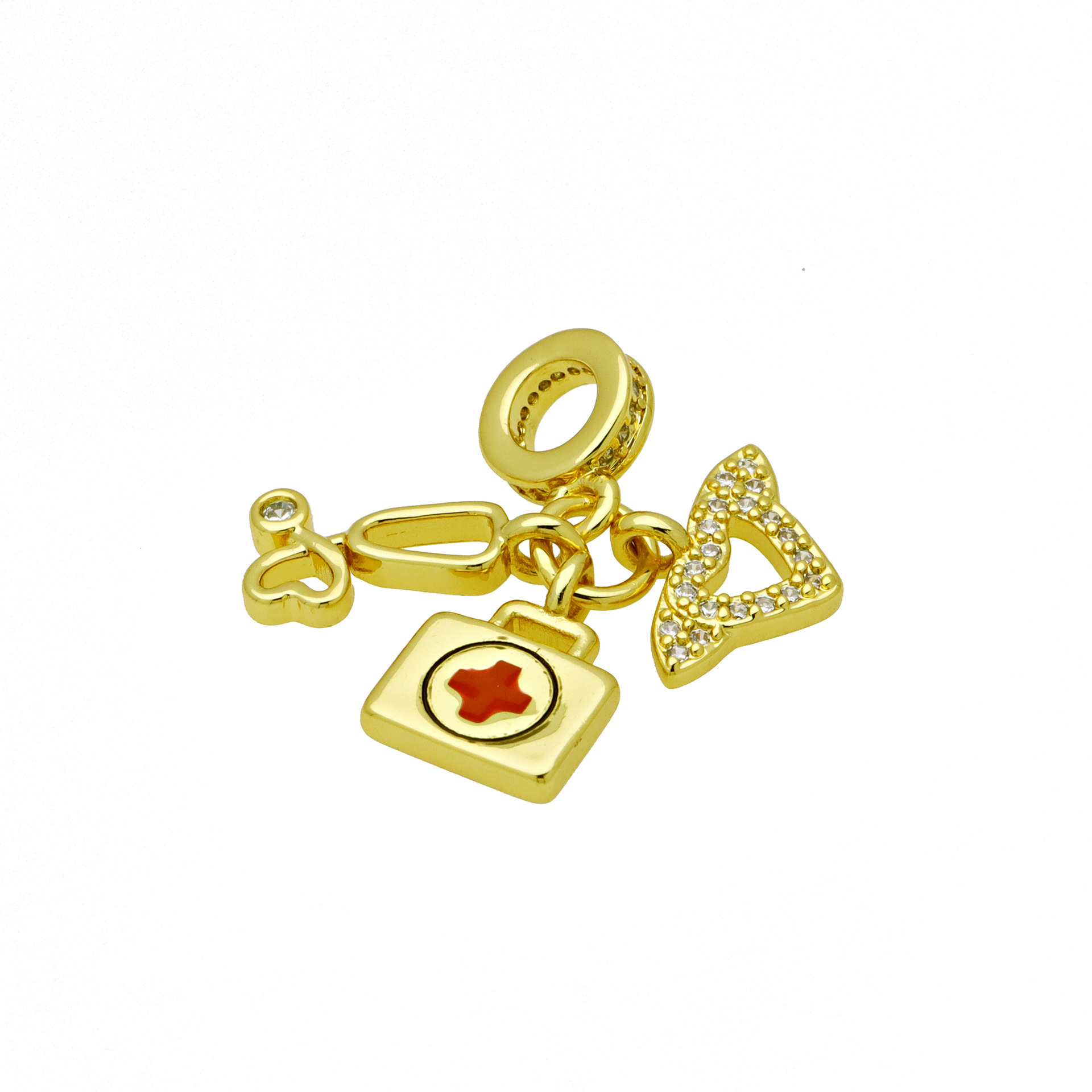 Terningformet Zirkon Micro Pave Messing vedhæng, guldfarve belagt, Anden figur til valg & du kan DIY & Micro Pave cubic zirconia & emalje, flere farver til valg, nikkel, bly & cadmium fri, 3pc'er/Bag, Solgt af Bag