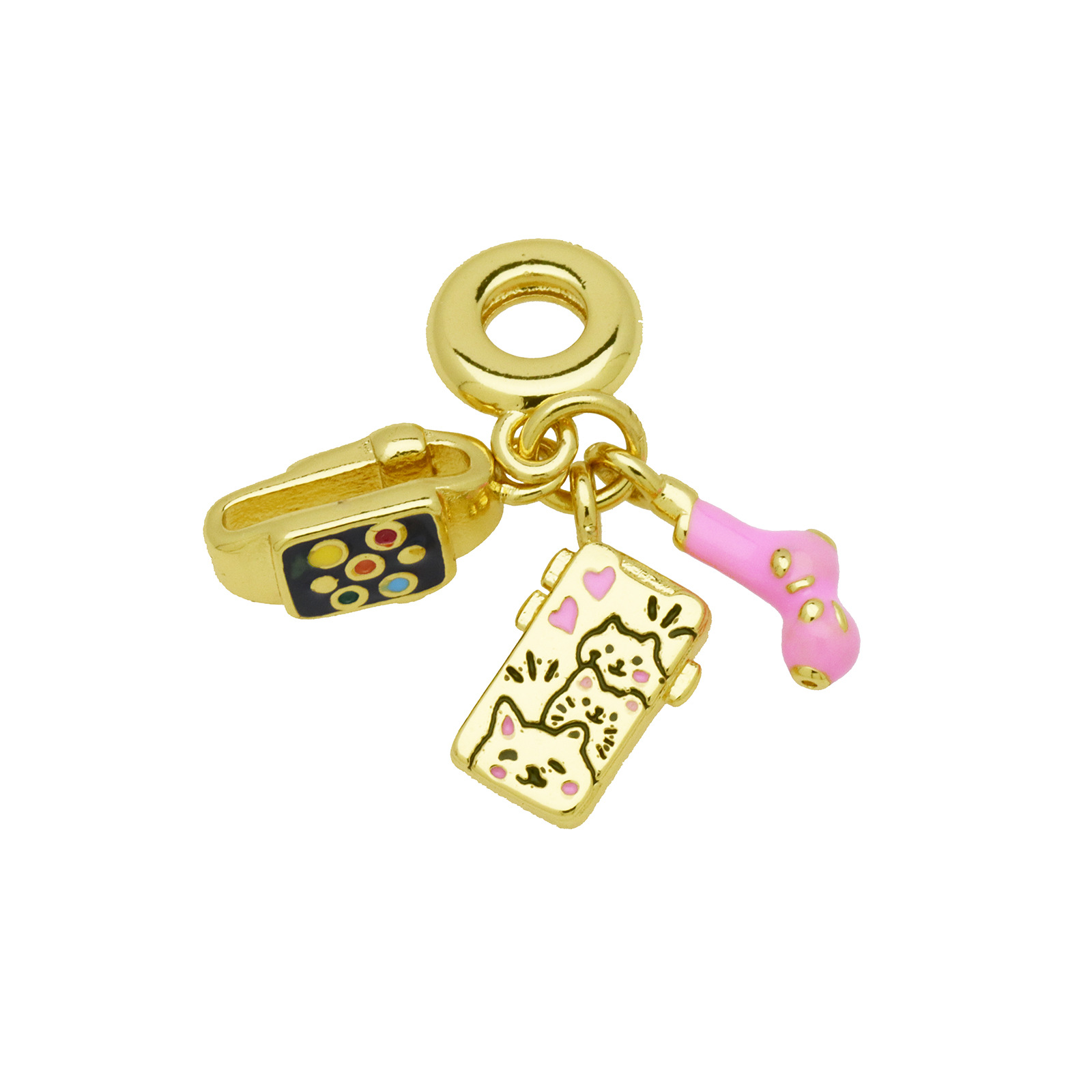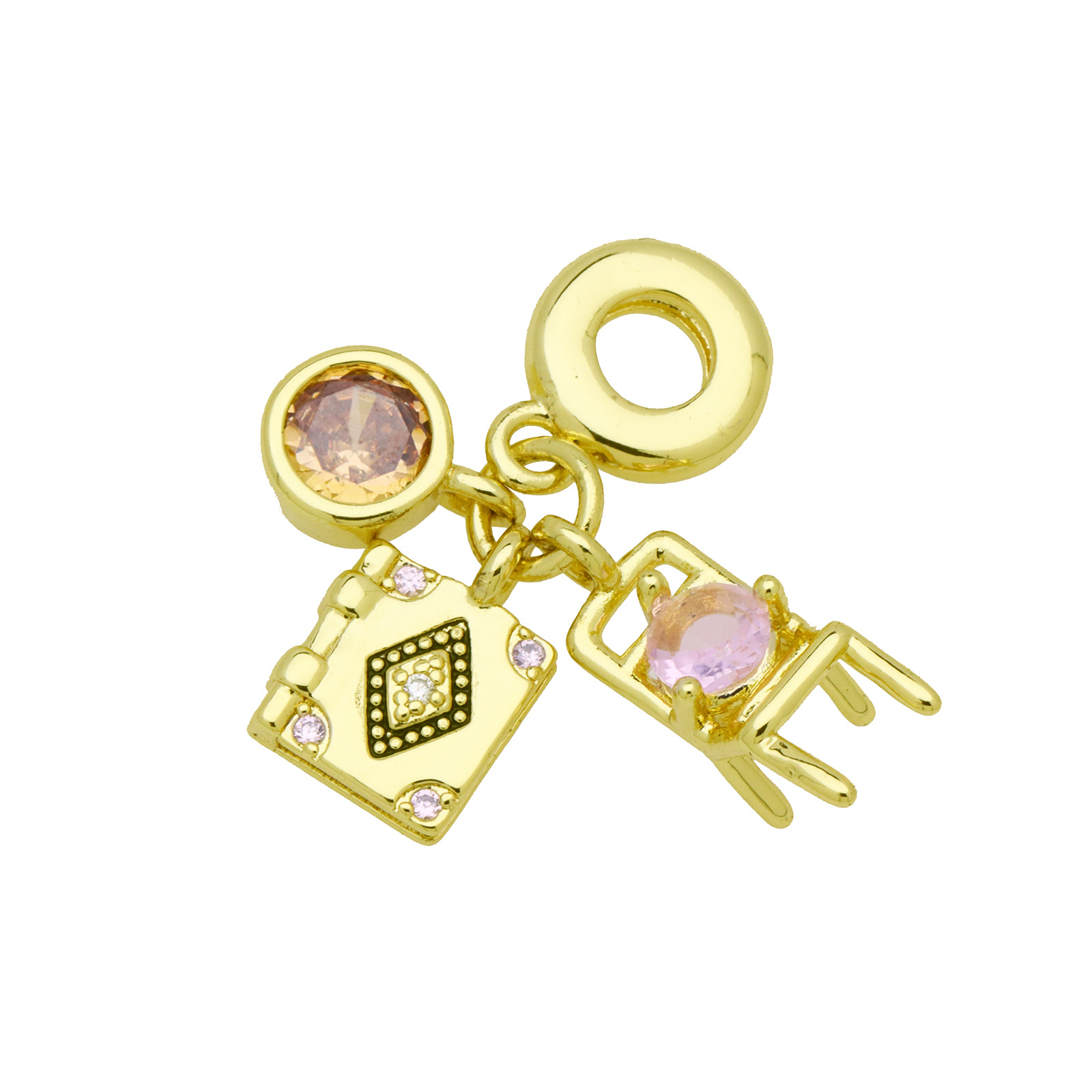 Terningformet Zirkon Micro Pave Messing vedhæng, guldfarve belagt, Anden figur til valg & du kan DIY & Micro Pave cubic zirconia & emalje, flere farver til valg, nikkel, bly & cadmium fri, 3pc'er/Bag, Solgt af Bag