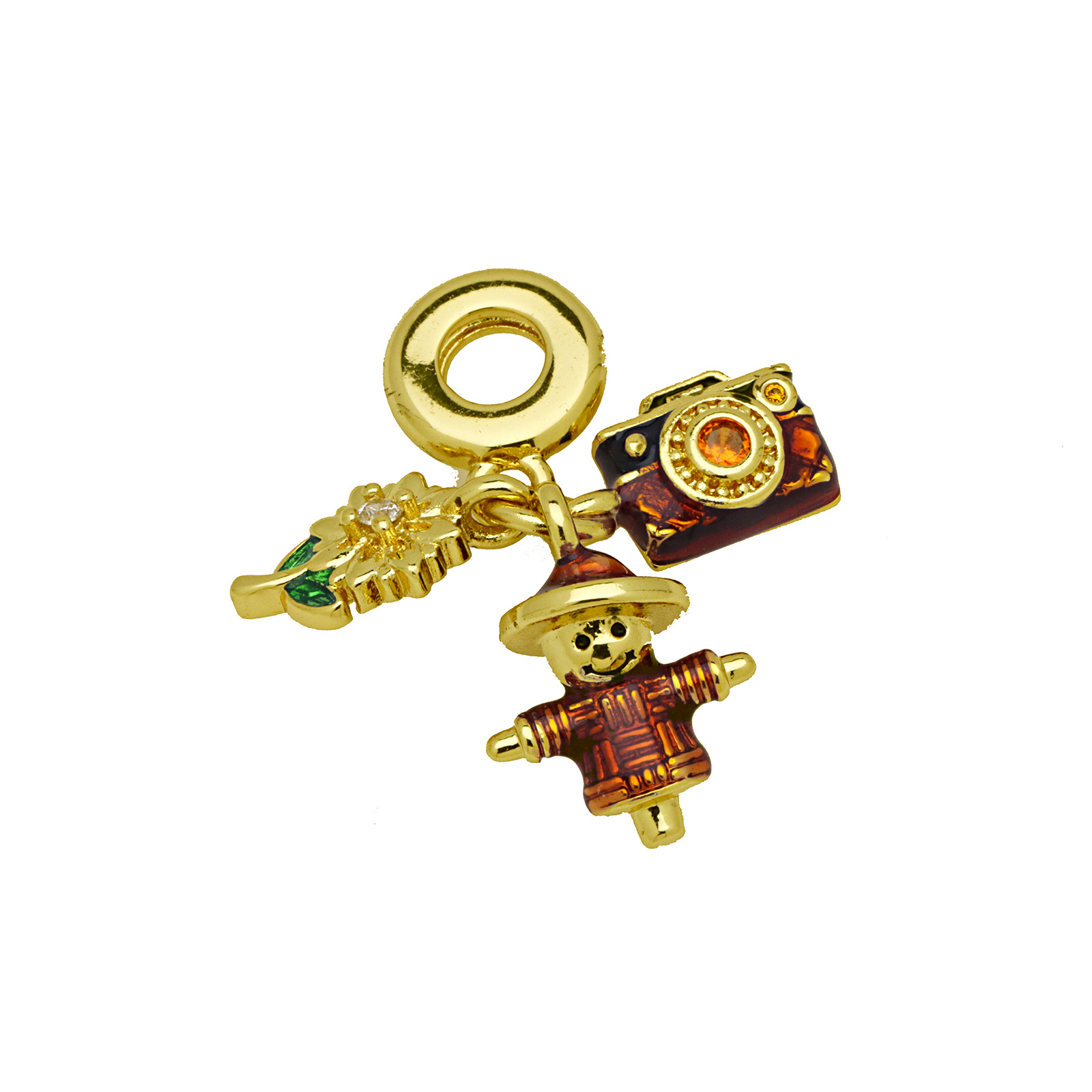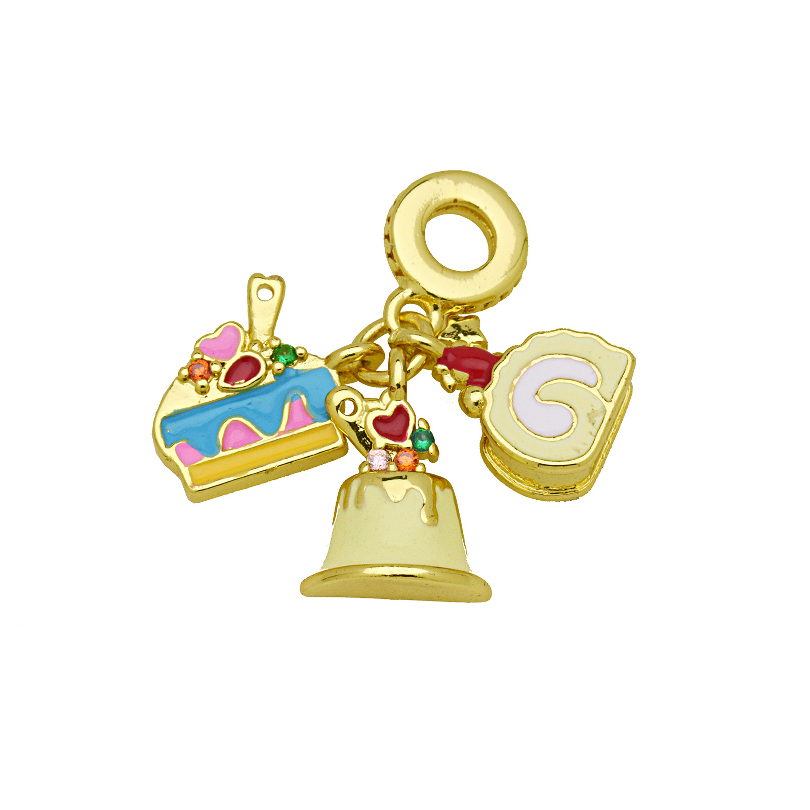 Terningformet Zirkon Micro Pave Messing vedhæng, guldfarve belagt, Anden figur til valg & du kan DIY & Micro Pave cubic zirconia & emalje, flere farver til valg, nikkel, bly & cadmium fri, 3pc'er/Bag, Solgt af Bag