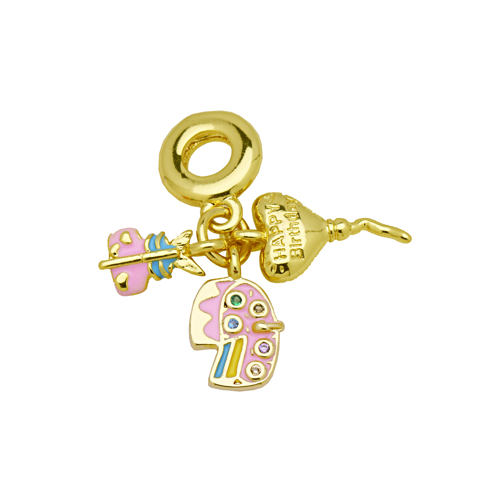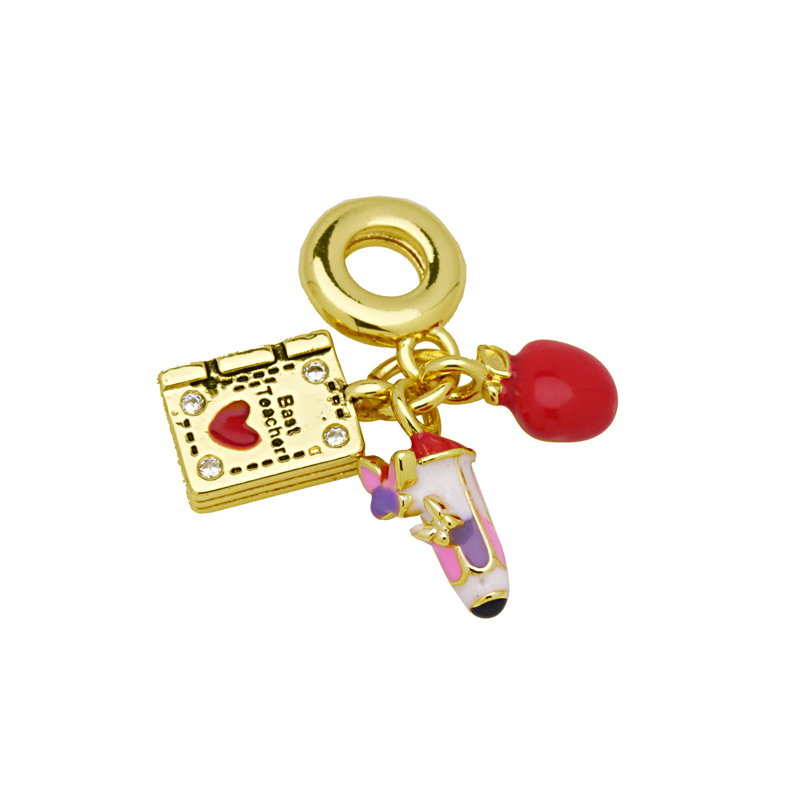 Terningformet Zirkon Micro Pave Messing vedhæng, guldfarve belagt, Anden figur til valg & du kan DIY & Micro Pave cubic zirconia & emalje, flere farver til valg, nikkel, bly & cadmium fri, 3pc'er/Bag, Solgt af Bag