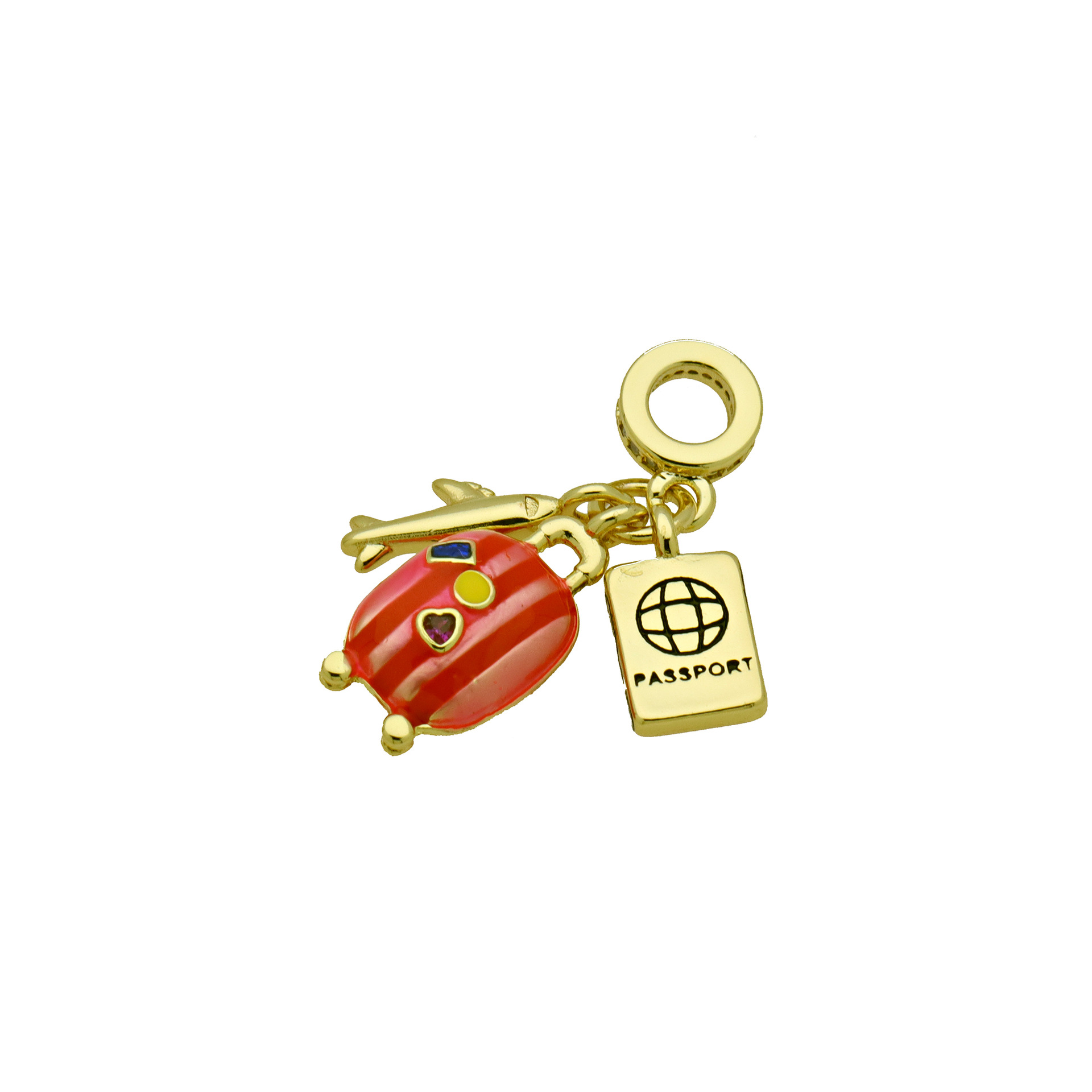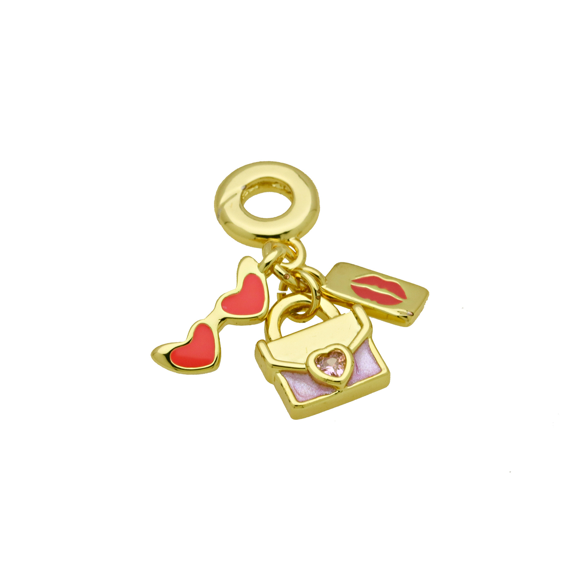 Terningformet Zirkon Micro Pave Messing vedhæng, guldfarve belagt, Anden figur til valg & du kan DIY & Micro Pave cubic zirconia & emalje, flere farver til valg, nikkel, bly & cadmium fri, 3pc'er/Bag, Solgt af Bag