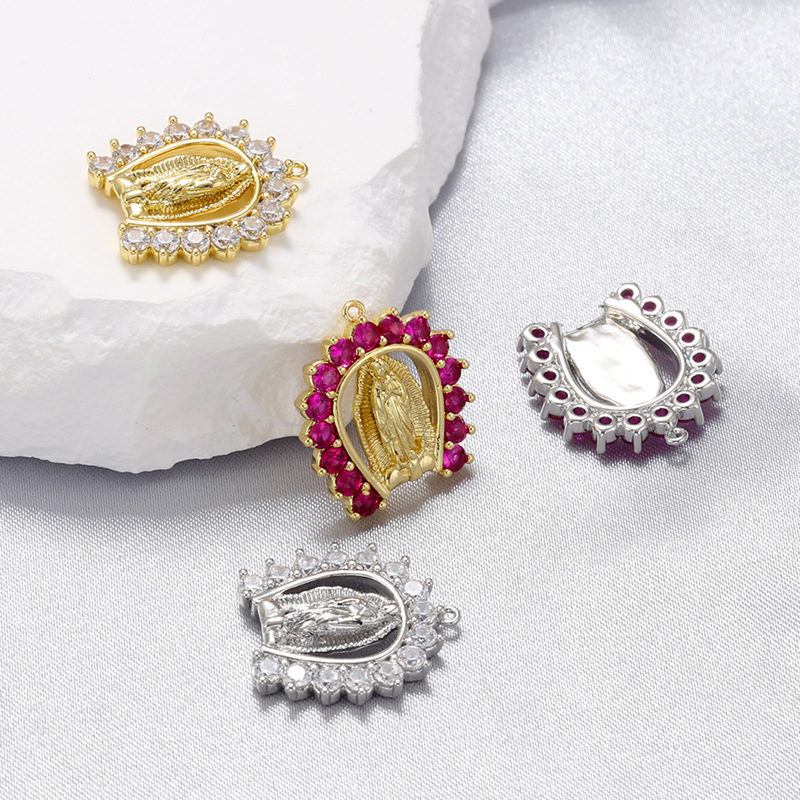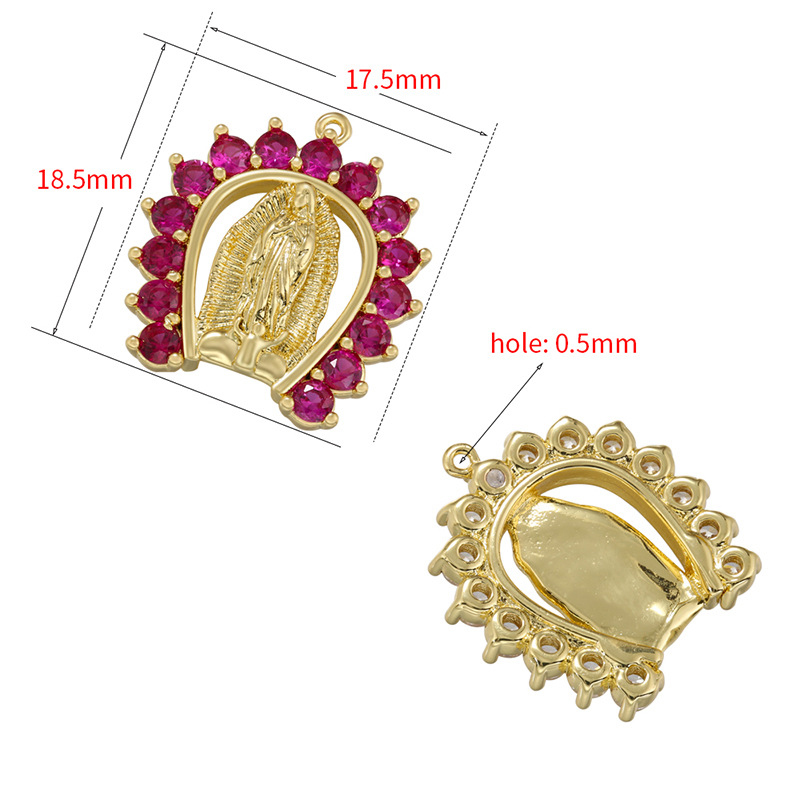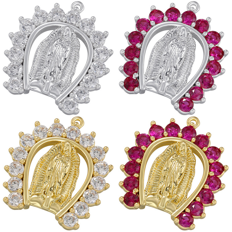 Terningformet Zirkon Micro Pave Messing vedhæng, Jomfru Maria, forgyldt, du kan DIY & Micro Pave cubic zirconia, flere farver til valg, 17.50x18.50mm, Solgt af PC