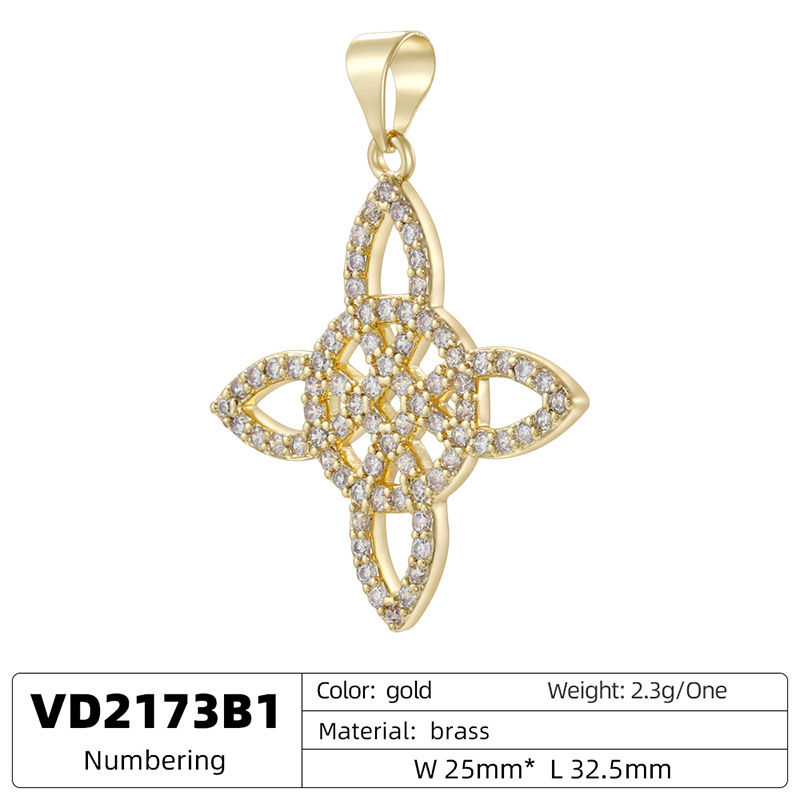 Terningformet Zirkon Micro Pave Messing vedhæng, Kryds, forgyldt, du kan DIY & Micro Pave cubic zirconia, flere farver til valg, Solgt af PC