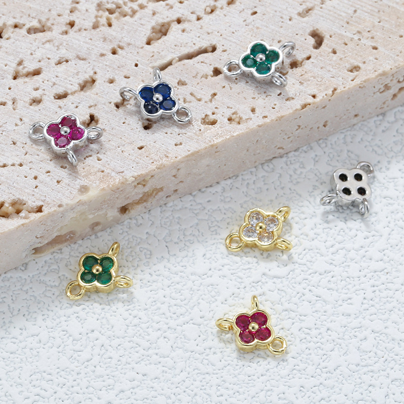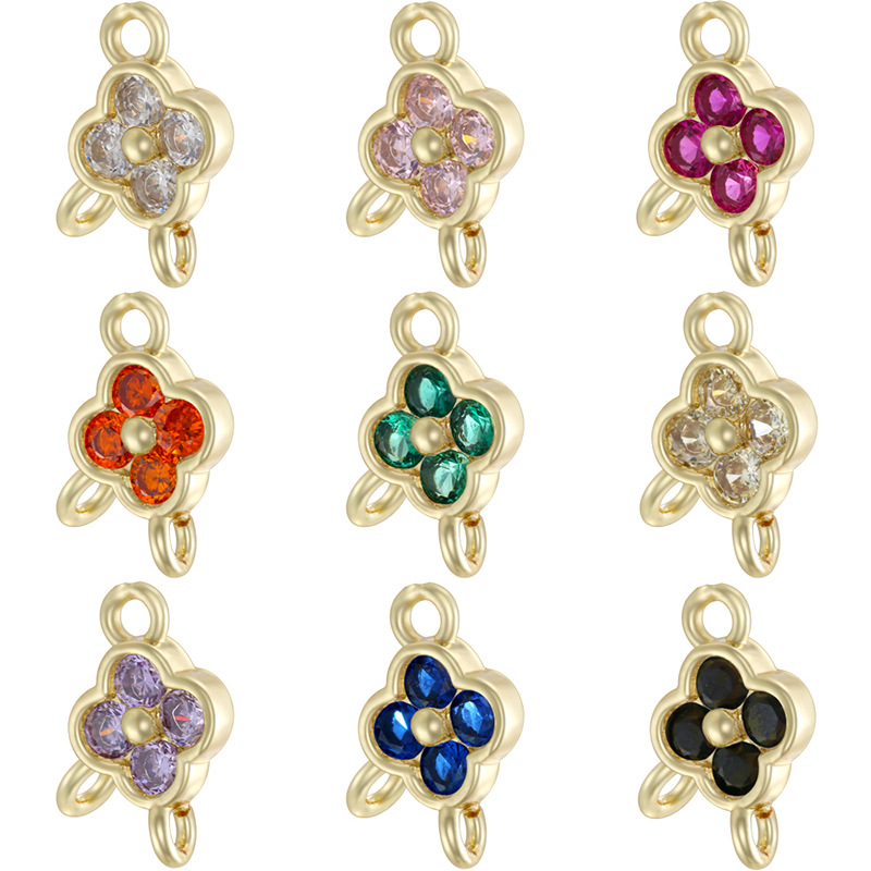 Terningformet Zirkon Micro Pave Messing vedhæng, Four Leaf Clover, forgyldt, du kan DIY & Micro Pave cubic zirconia, flere farver til valg, 7x10mm, Solgt af PC