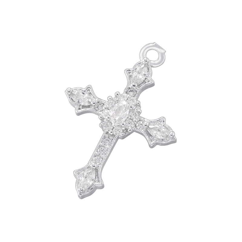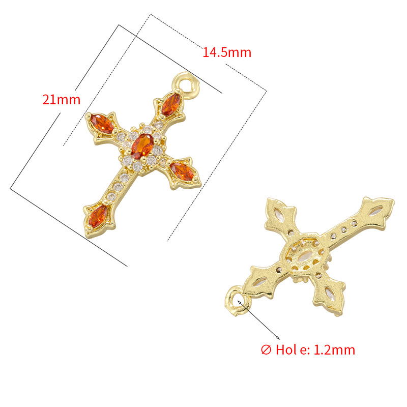 Terningformet Zirkon Micro Pave Messing vedhæng, Kryds, forgyldt, du kan DIY & Micro Pave cubic zirconia, flere farver til valg, 14.50x21mm, Solgt af PC