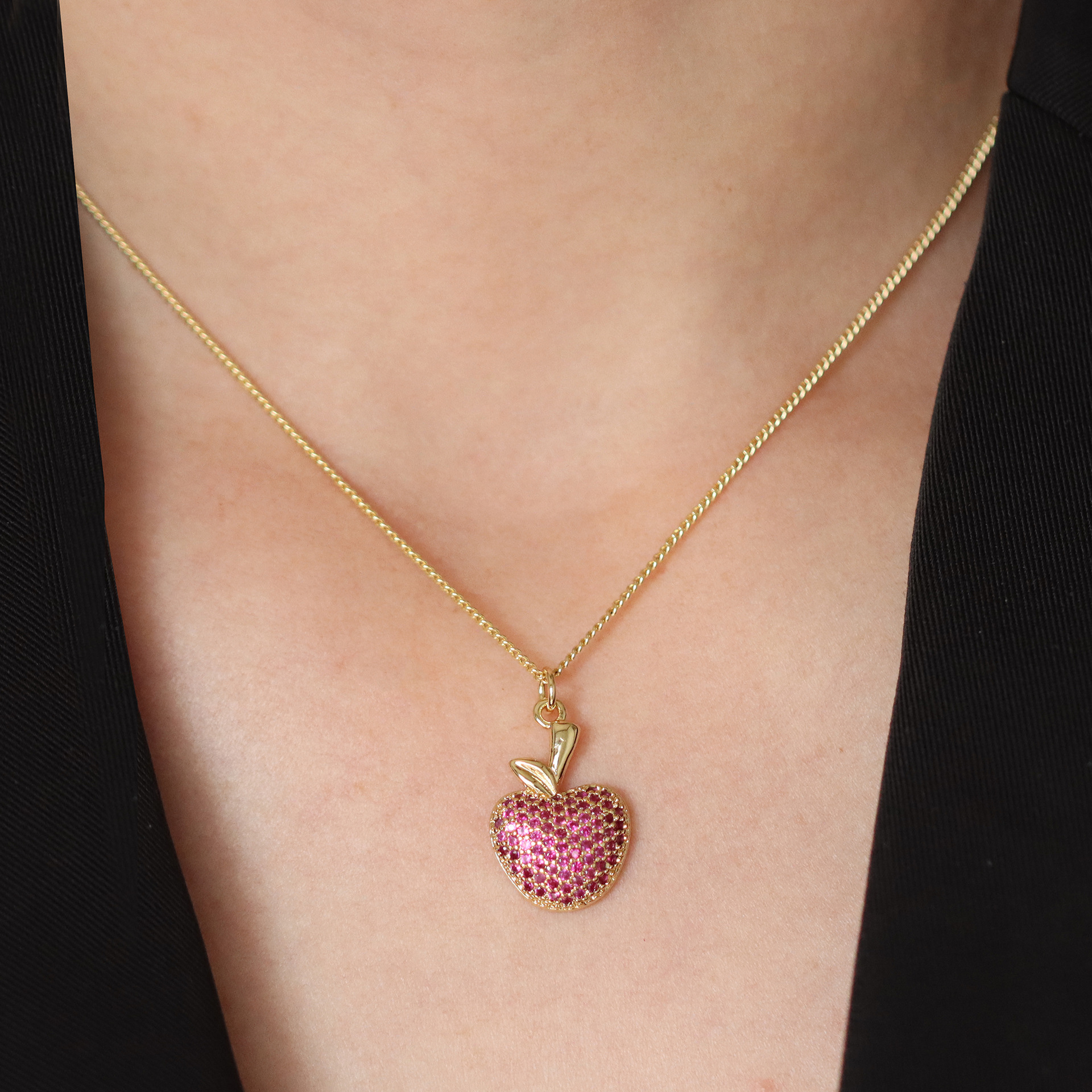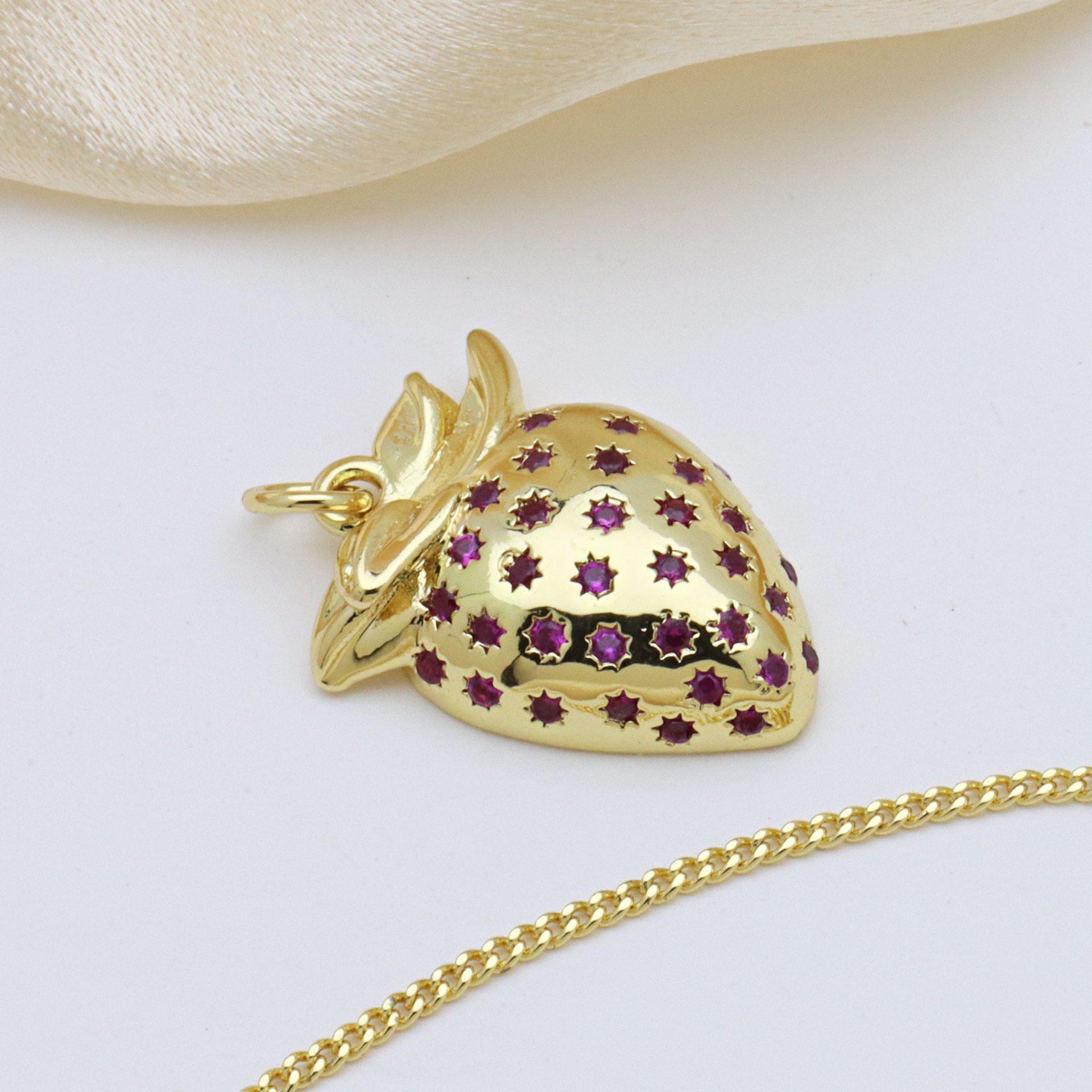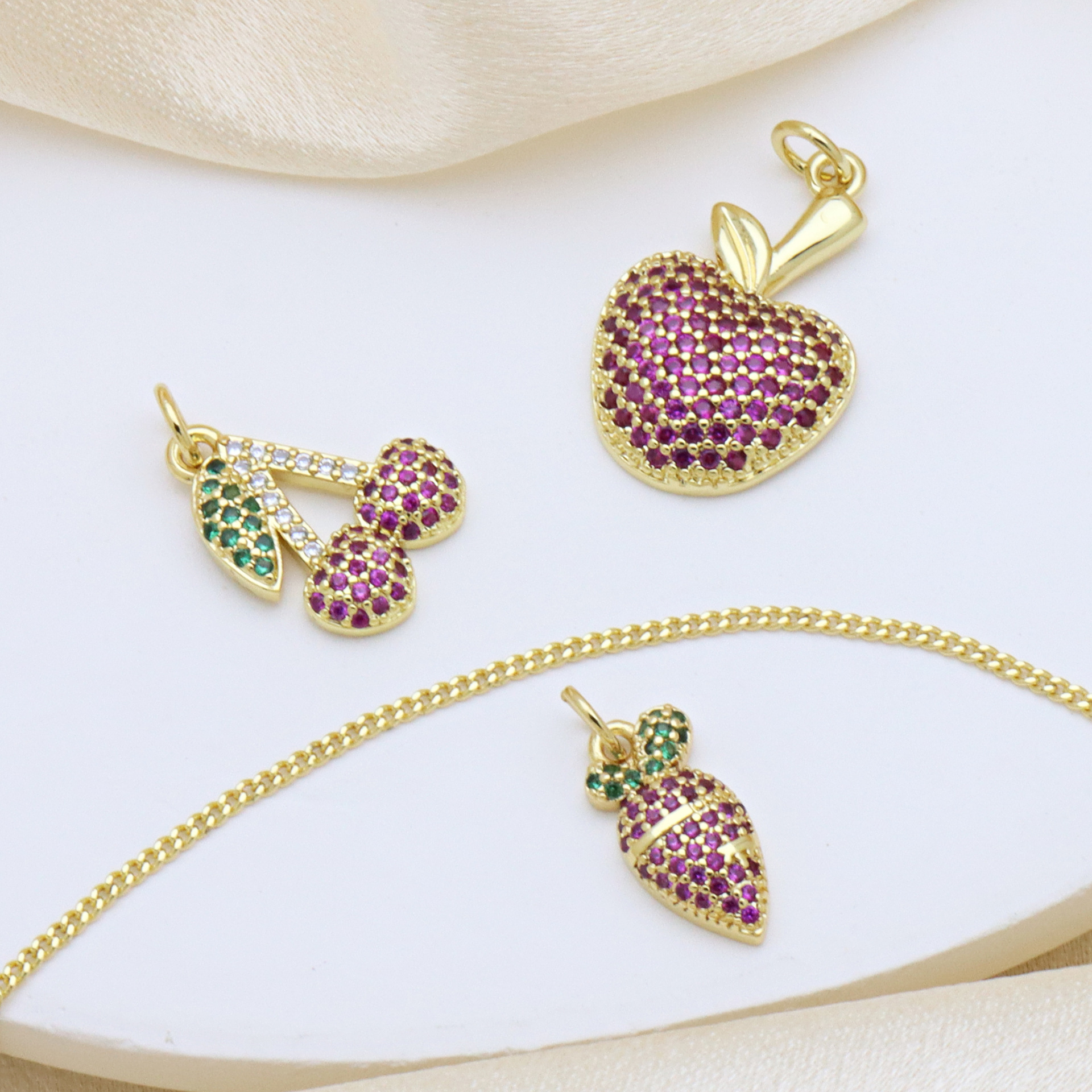 Terningformet Zirkon Micro Pave Messing vedhæng, frugt, guldfarve belagt, du kan DIY & forskellige stilarter for valg & Micro Pave cubic zirconia, flere farver til valg, Solgt af PC