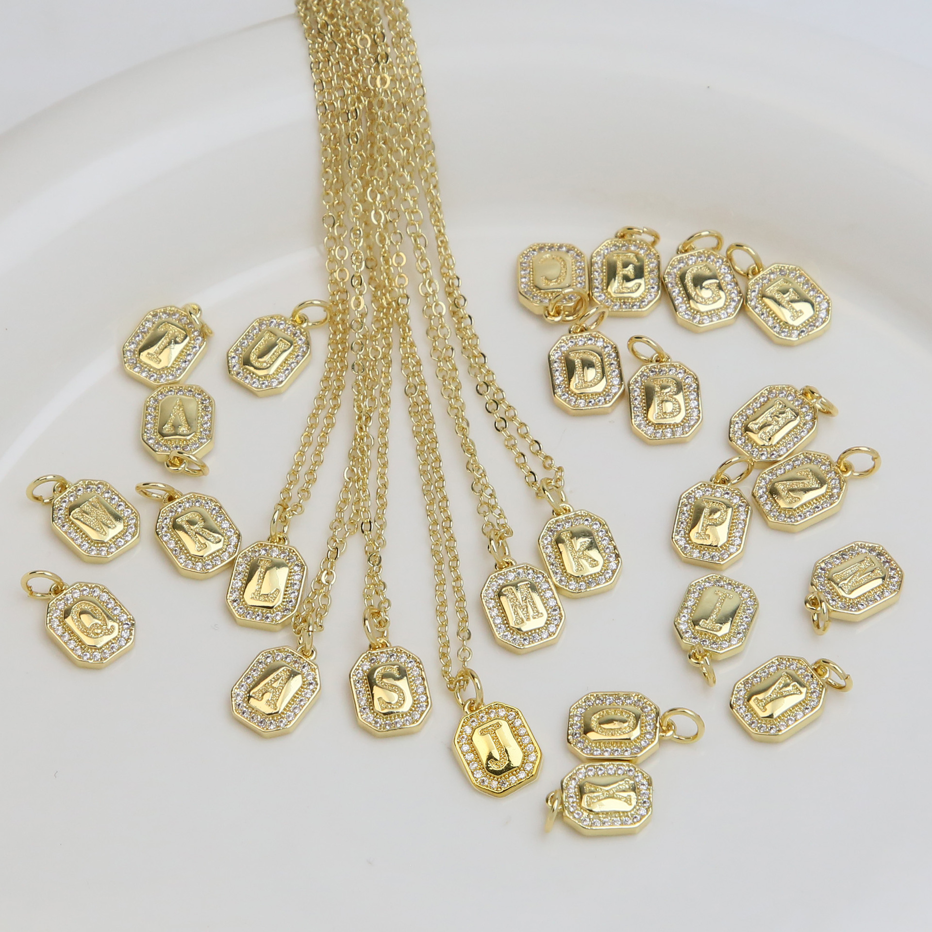• Effekt:bogstaverne er fra A til Z,du kan DIY,forskellige stilarter for valg,Micro Pave cubic zirconia