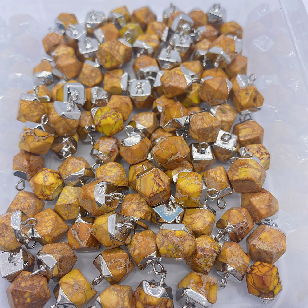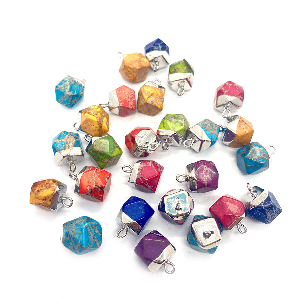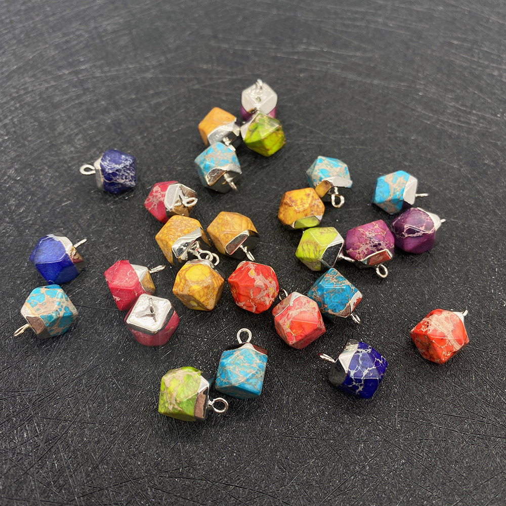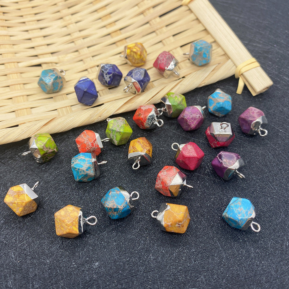 Turkis vedhæng, Hexagon, sølvfarvet forgyldt, du kan DIY, flere farver til valg, 9x13mm, Solgt af PC